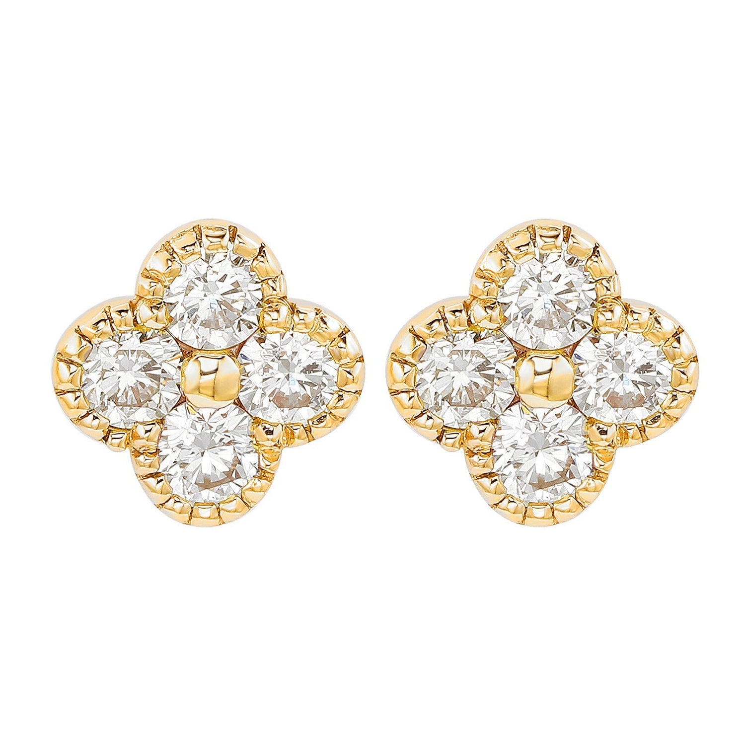 Suzy Levian 14K Yellow Gold 2/5 CTTW Diamond Clover Stud Earrings