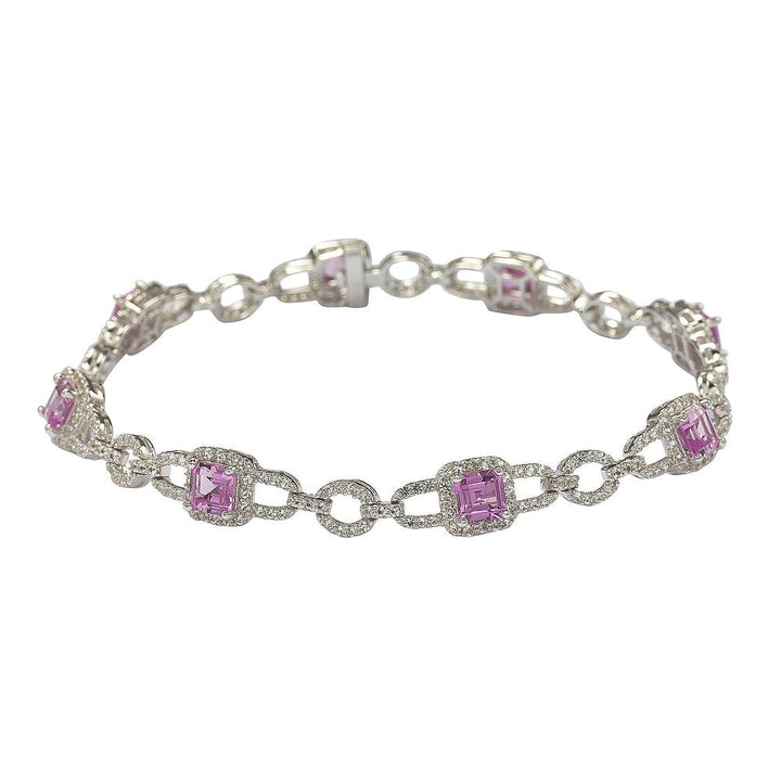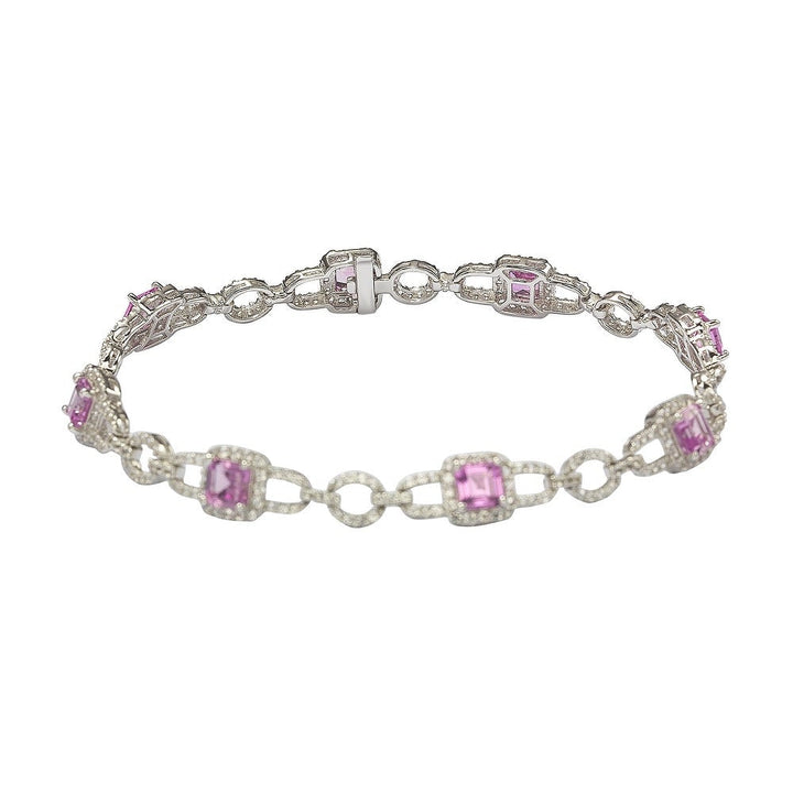 Suzy Levian Sterling Silver Asscher Cut Pink Sapphire & Diamond Accent Tennis Bracelet