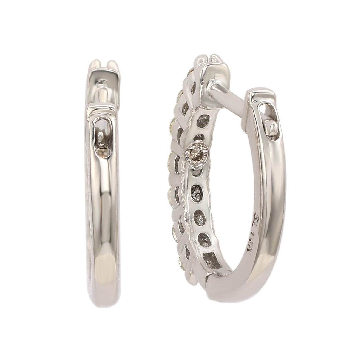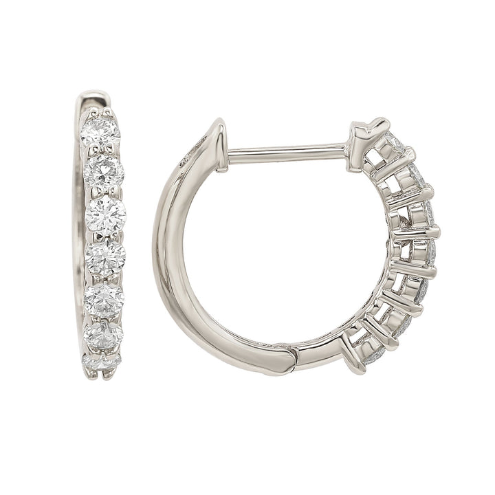 These 14K White Gold 1.40ct Diamond Huggie Hoop Earrings by Suzy Levian redefine luxury with their captivating sparkle and sleek, modern design. Adorned with 14 round-cut diamonds, these high-polish hoops provide just the right amount of glamour for daily wear or evening elegance. With a refined silhouette and radiant diamonds, they are a versatile staple for any fine jewelry collection, symbolizing both grace and confidence.