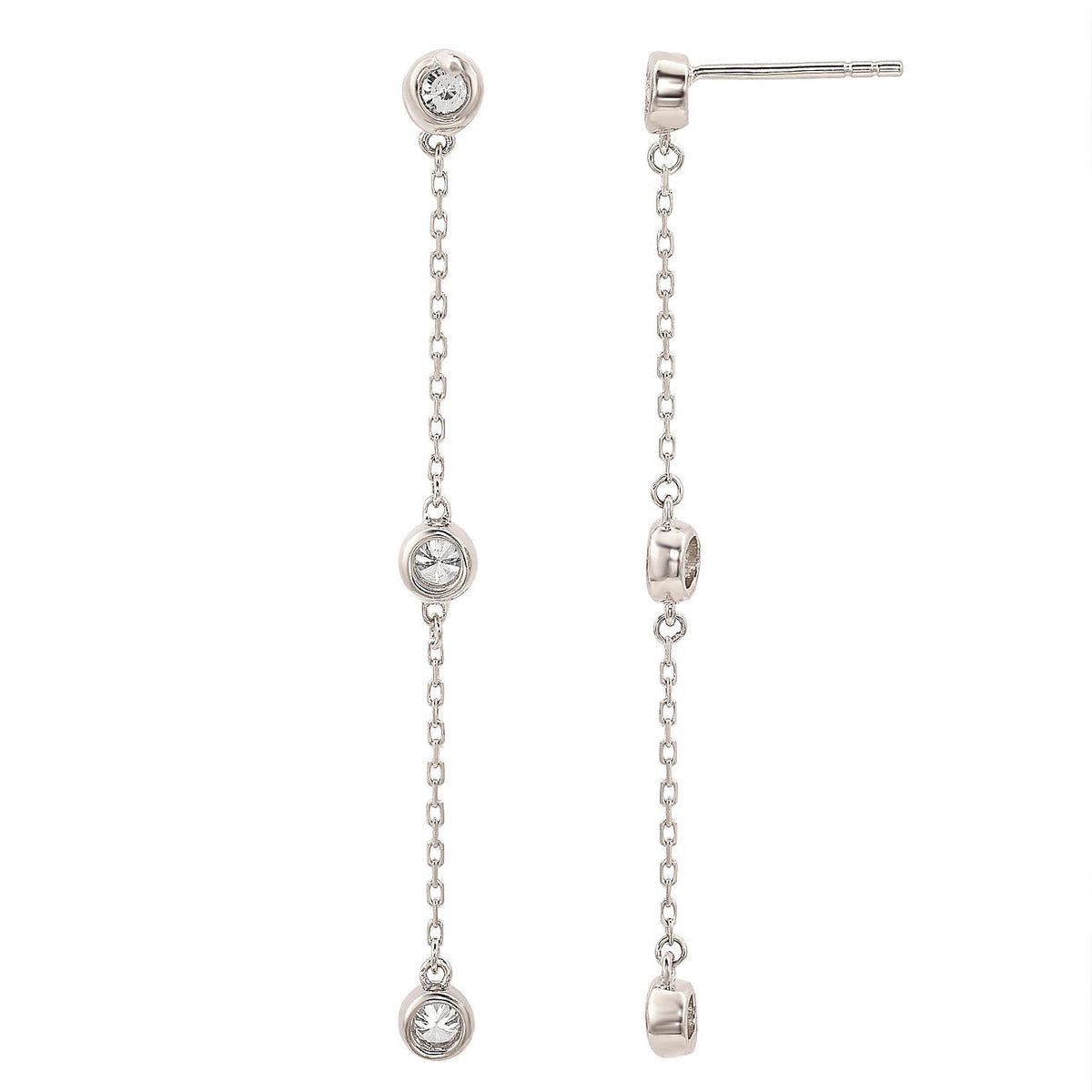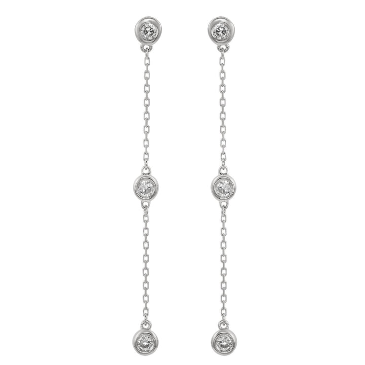 Suzy Levian White Gold 4/5 CTTW Diamond Station Dangle Earrings
