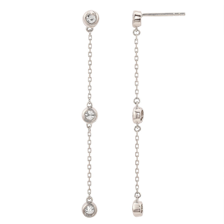 These White Gold 4/5 CTTW Diamond Station Dangle Earrings by Suzy Levian bring radiant sparkle to every moment. Crafted to empower and elevate, these polished white gold earrings showcase six bezel-set round diamonds in a chic station design. Sleek, sophisticated, and endlessly versatile, they make a statement of confidence and grace.