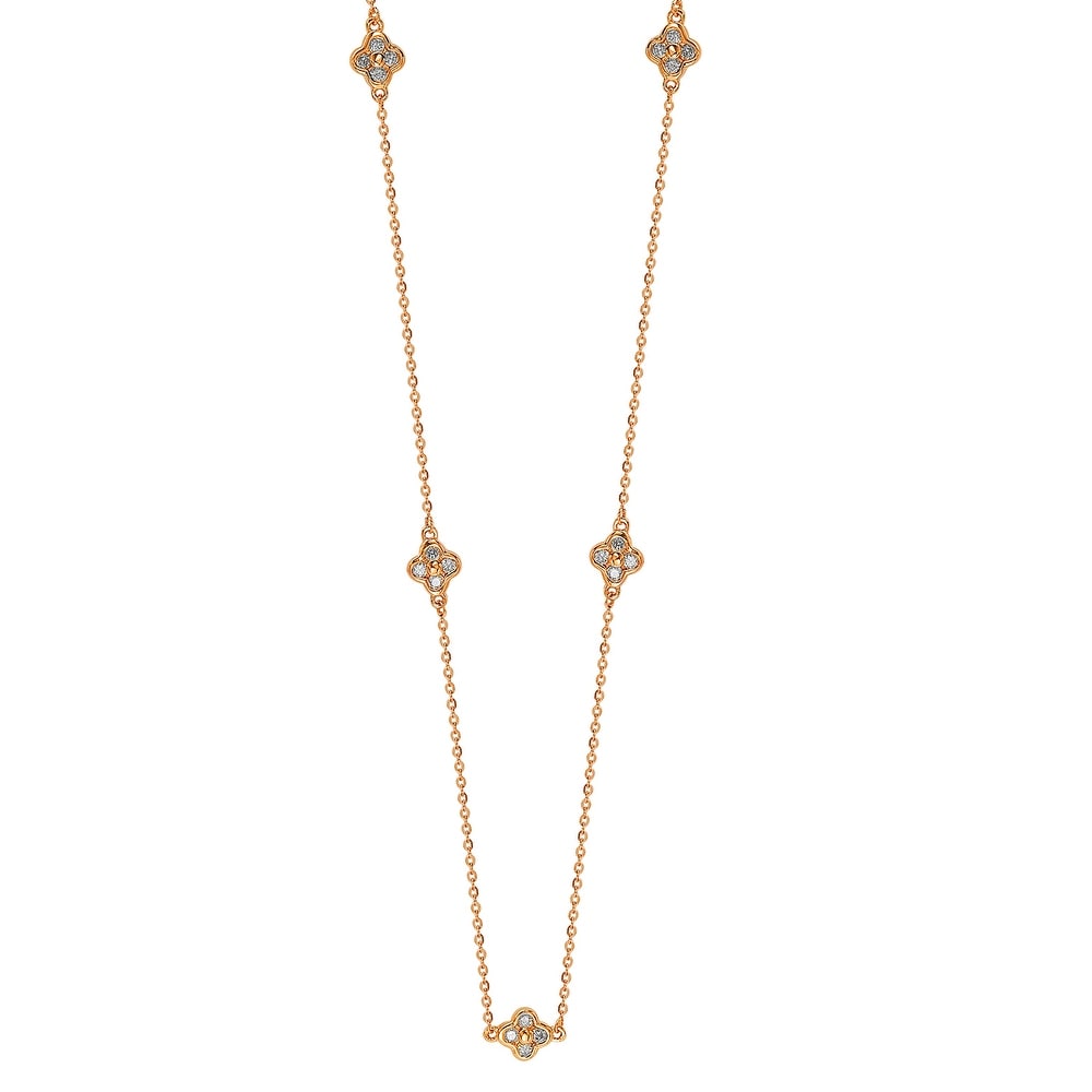 Suzy Levian 14K Rose Gold .40ttw Diamond Clover By The Yard Necklace