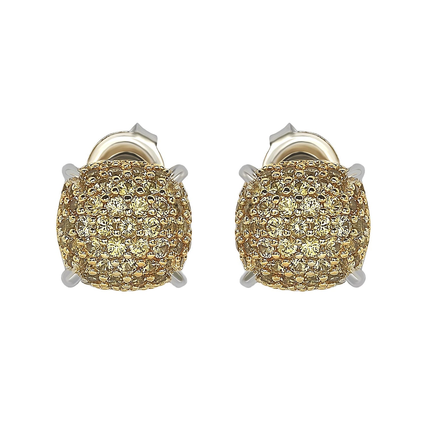 Suzy Levian Sterling Silver Yellow Sapphire & Diamond Accent Pave Cluster Earrings