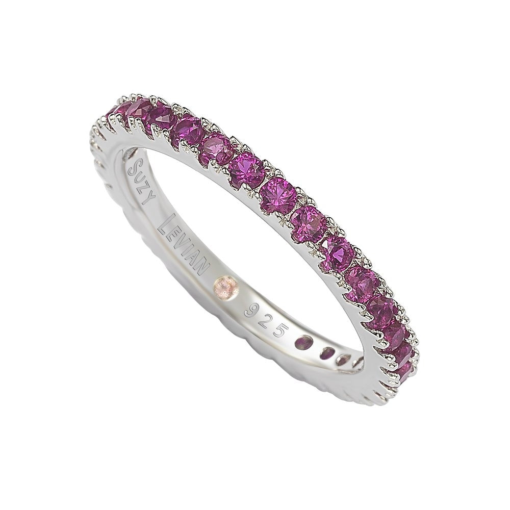 Suzy Levian Sterling Silver Thin Red Cubic Zirconia Eternity Band