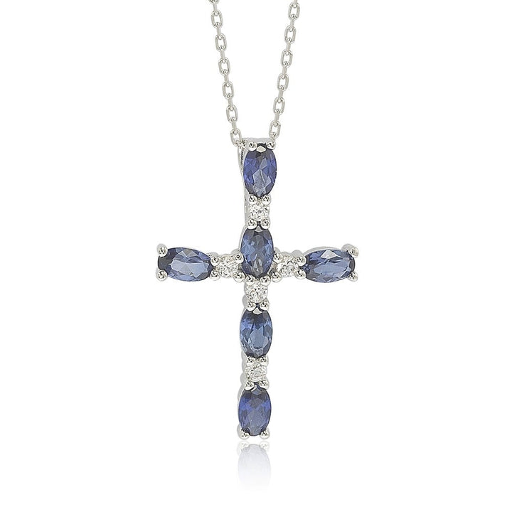 Suzy Levian Sterling Silver Sapphire and Diamond Accent Cross Pendant
