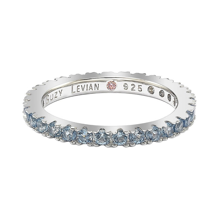 Suzy Levian Sterling Silver Thin Aqua Cubic Zirconia Eternity Band