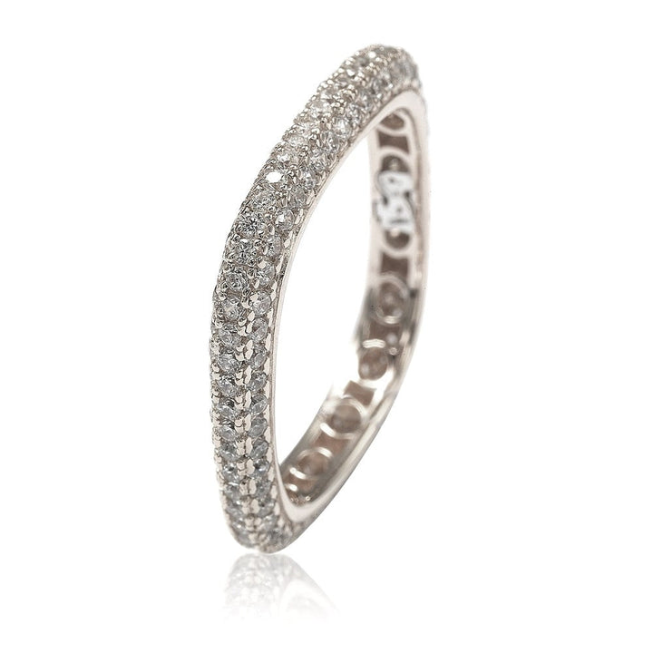 Suzy Levian Sterling Silver Cubic Zirconia Modern Pave Square Eternity Band