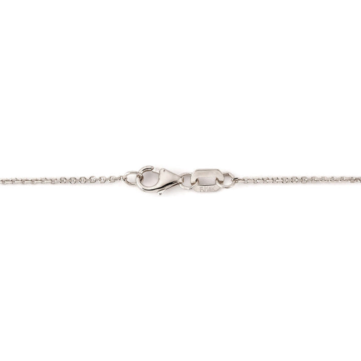 14K white gold. 12 round diamonds, 4/5 carat total diamond weight. Diamond clarity: SI1-SI2. Diamond color: G-H. Lobster-claw clasp. Chain length: 18 inches.