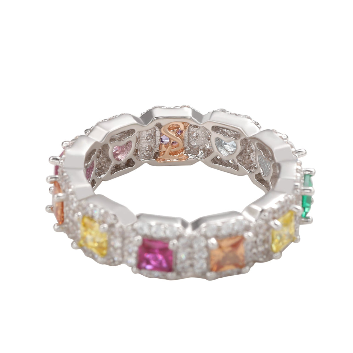 Suzy Levian Sterling Silver Rainbow Cubic Zirconia Princess Cut Eternity Band