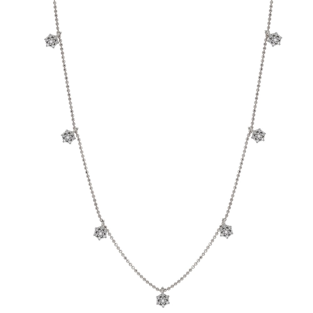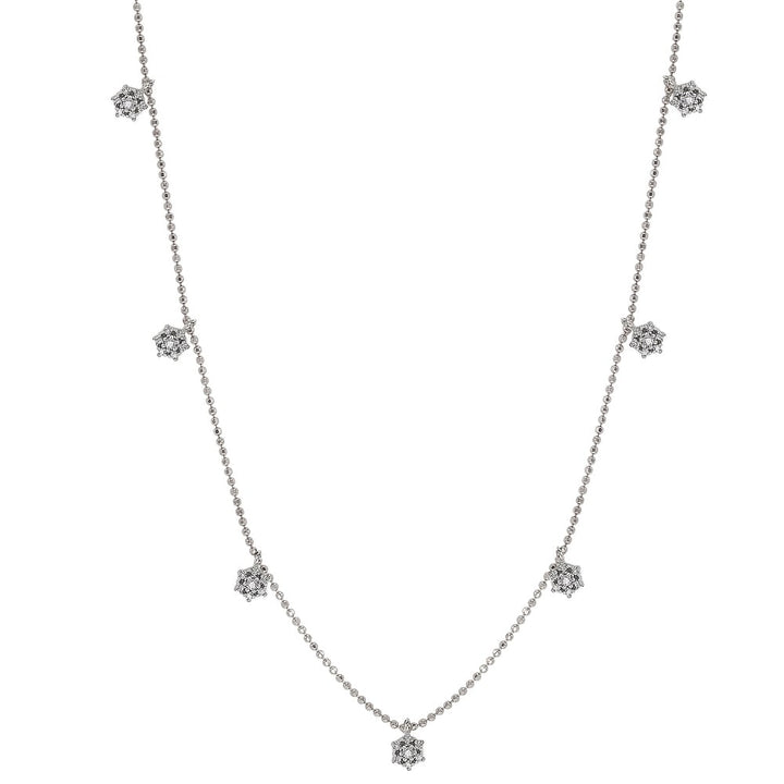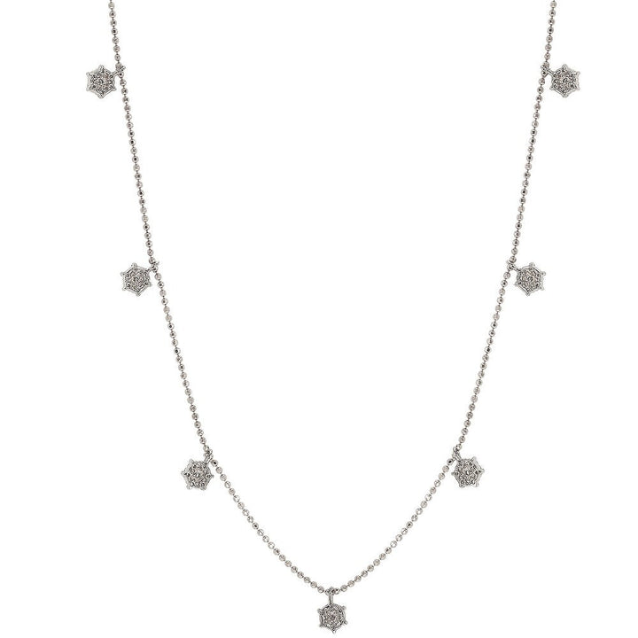 Suzy Levian 14K White Gold .30cttw Diamond Flower Station Necklace