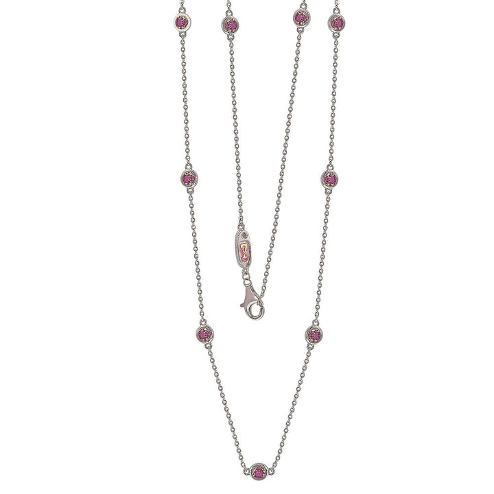 Suzy Levian Pink Sapphire 1.80cttw Sterling Silver Station Necklace