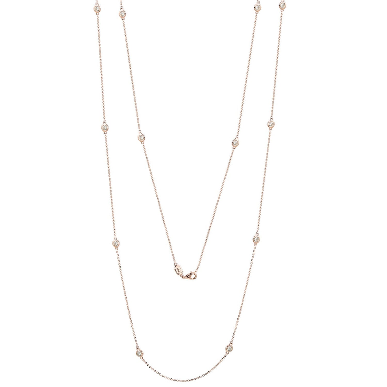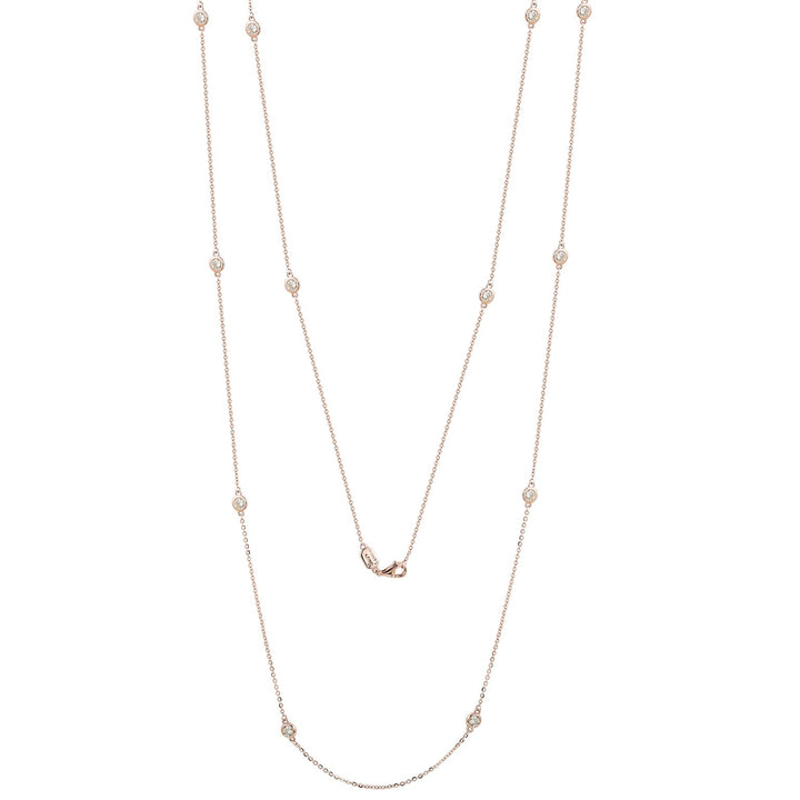 Suzy Levian 14k Rose Gold 1.70 CTTW Bezel Diamond Station Necklace (36 inch)