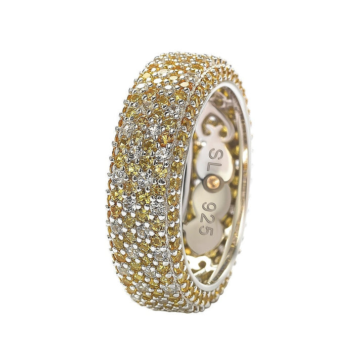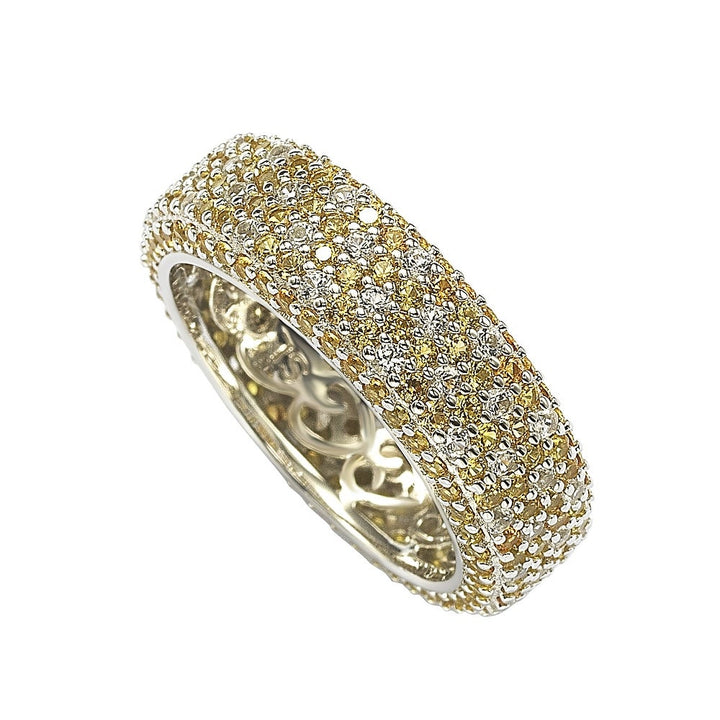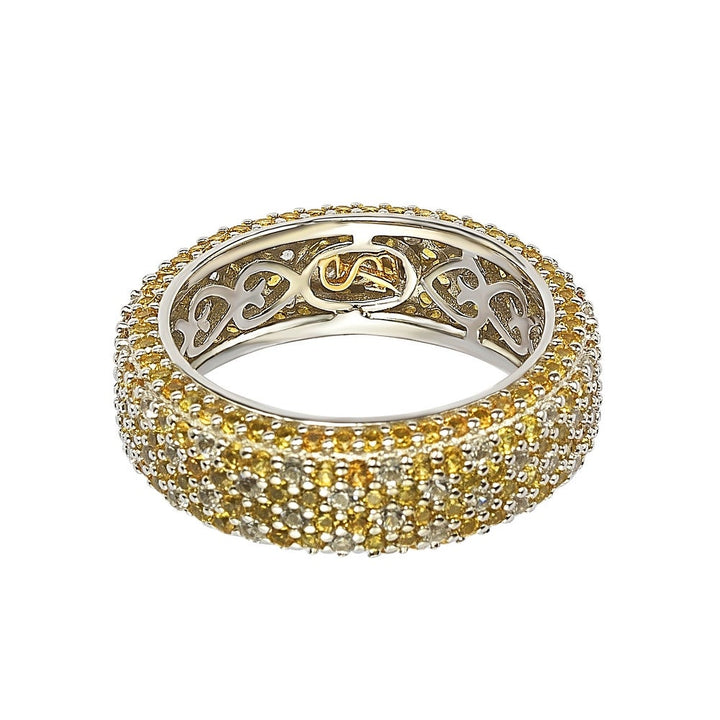 Suzy Levian Sterling Silver Yellow Sapphire and Diamond Accent Eternity Pave Ring