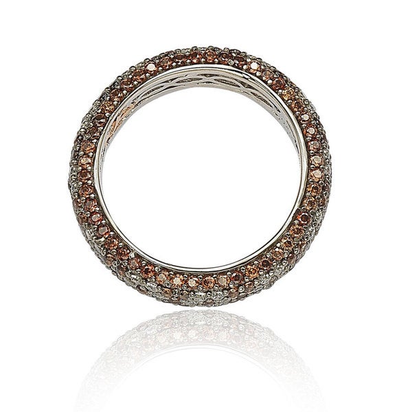 Suzy Levian Sterling Silver Cubic Zirconia Brown and White Flower Eternity Band