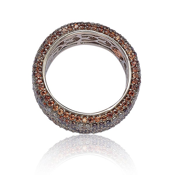 Suzy Levian Sterling Silver Cubic Zirconia Brown and White Flower Eternity Band