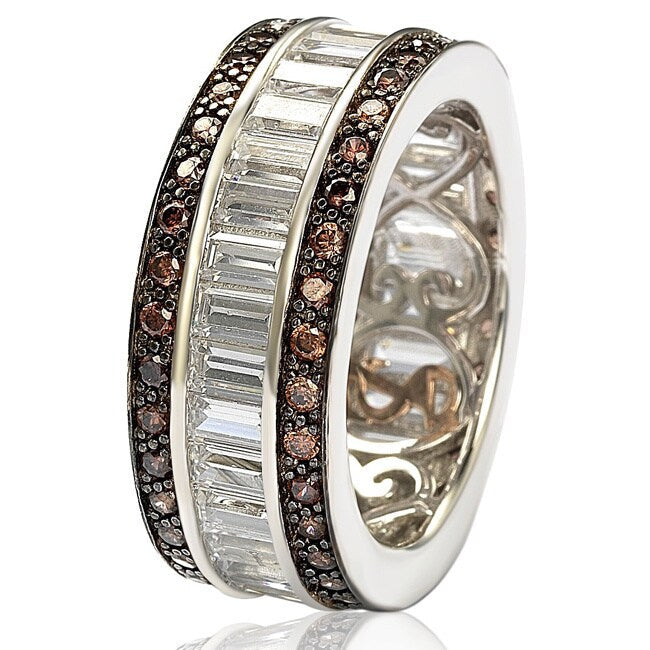 Suzy Levian Sterling Silver Cubic Zirconia Brown and White Baguette Eternity Band
