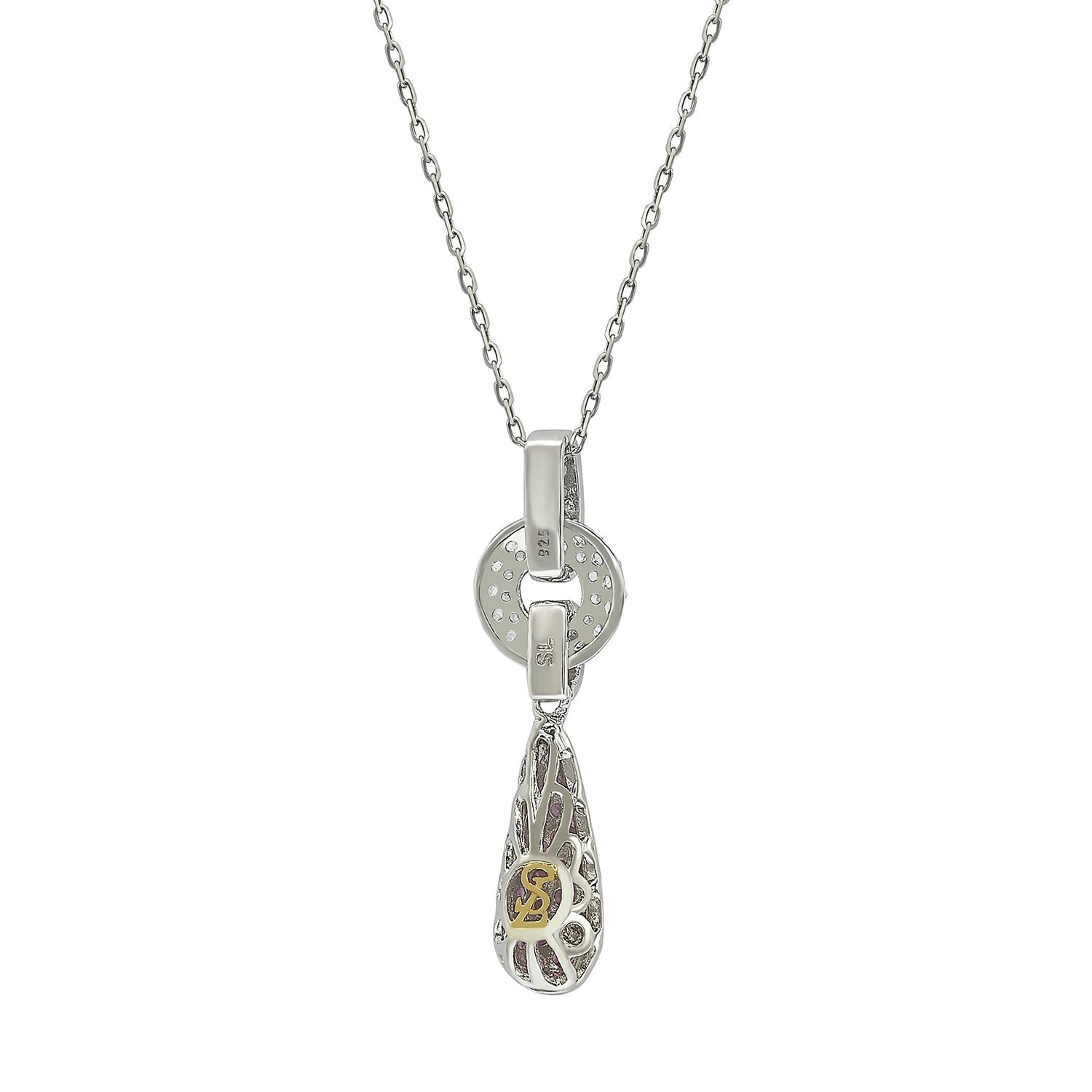 Suzy Levian Sterling Silver Pink Sapphire and Diamond Accent Pave Tear Drop Pendant