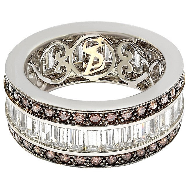 Suzy Levian Sterling Silver Cubic Zirconia Brown and White Baguette Eternity Band