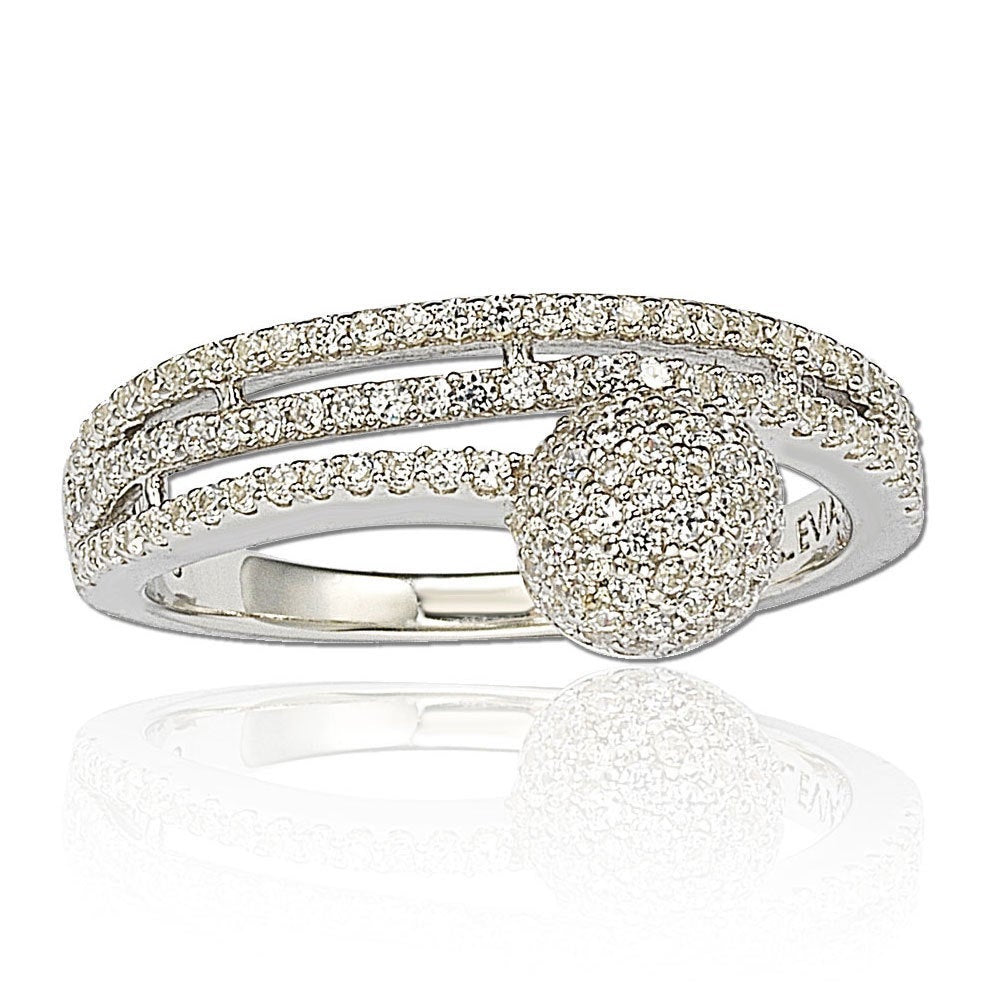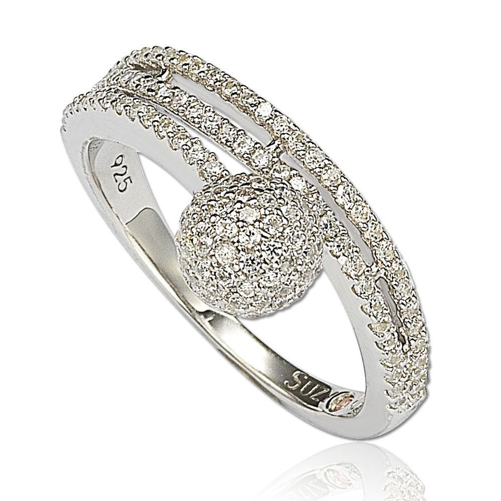 Suzy Levian Sterling Silver Cubic Zirconia Pave Ball Ring