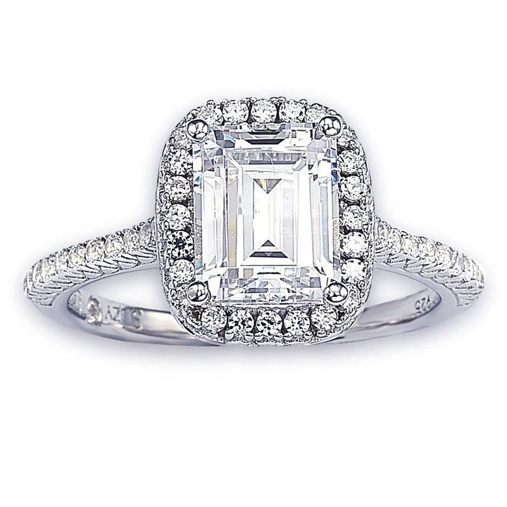 Suzy Levian Bridal Sterling Silver Asscher-cut White Cubic Zirconia Halo Engagement Ring