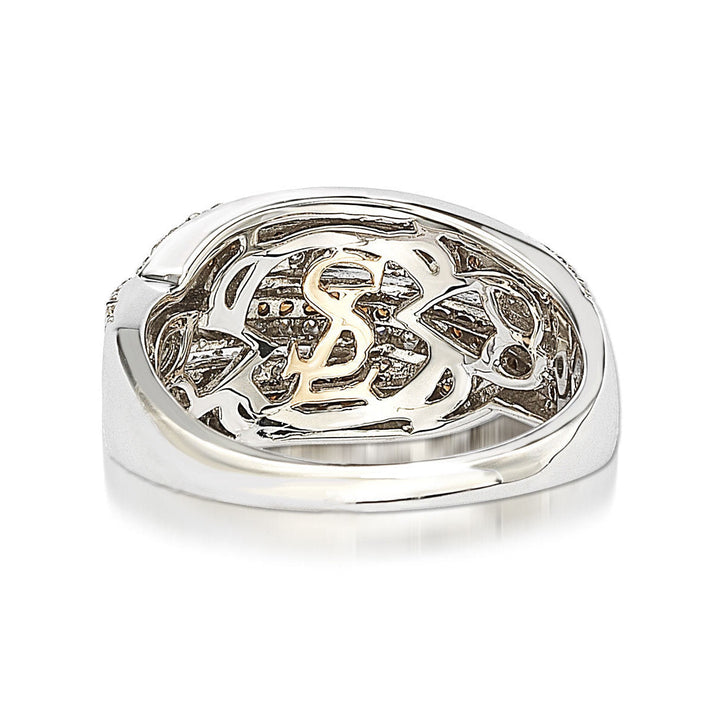 Crafted in sterling silver with 183 round-cut white and brown cubic zirconia stones. Features a comfort-fit closed under-gallery for a luxurious feel.