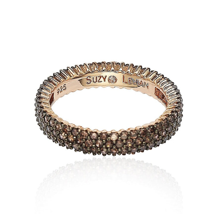 Suzy Levian Rose Sterling Silver Micro-Pave Brown Cubic Zirconia Eternity Band