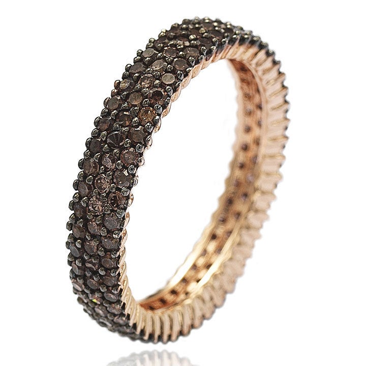 Sterling silver with rose gold plating. 130 hand-set round brown cubic zirconia stones in a pavé eternity design. Signature hidden stone in the shank.