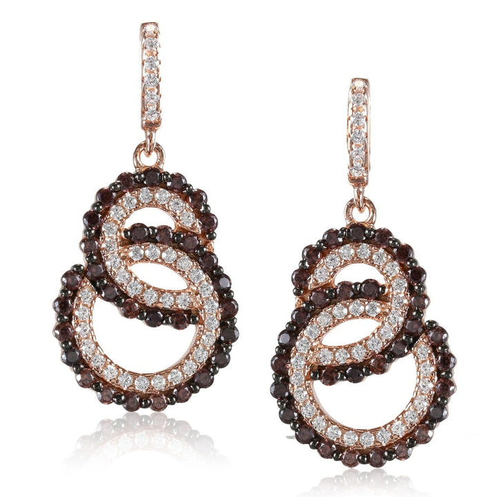Suzy Levian Rose Sterling Silver Brown Cubic Zirconia Interlocked Double Loop Earrings