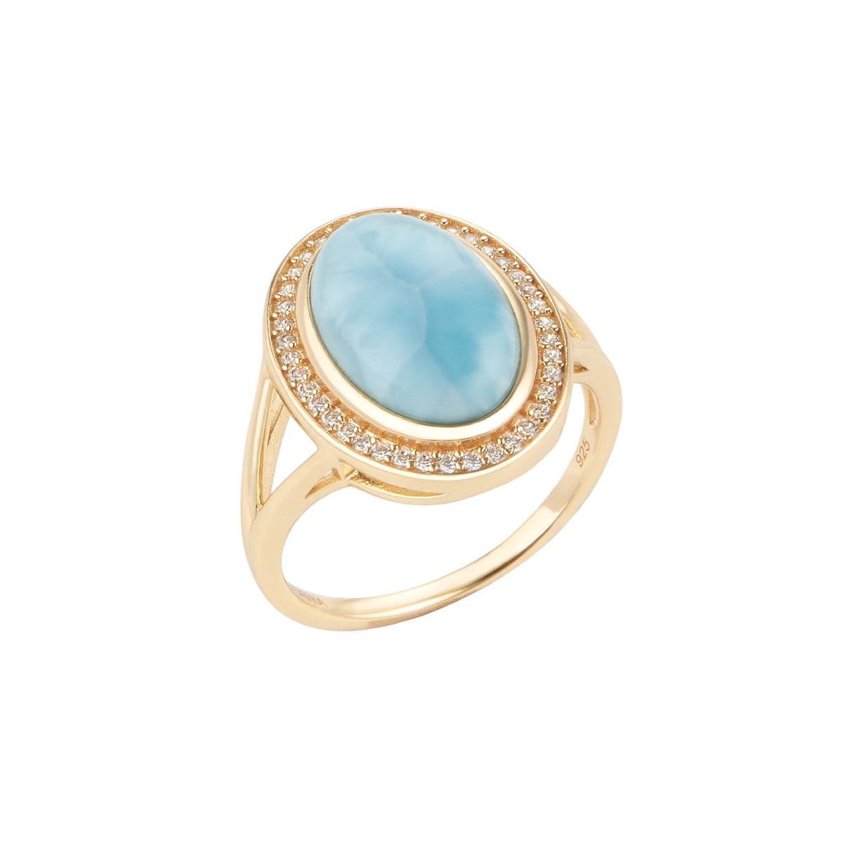 Adornia Larimar Halo Ring 14k gold vermeil