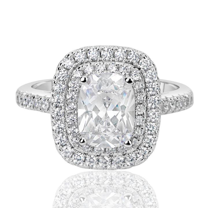 Suzy Levian Sterling Silver Cushion Cut White Cubic Zirconia Double Halo Bridal Ring