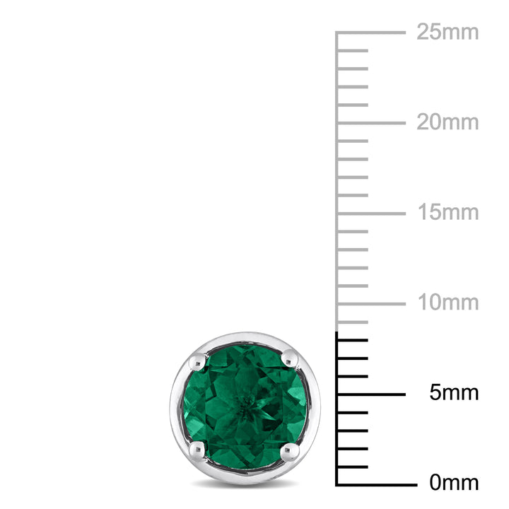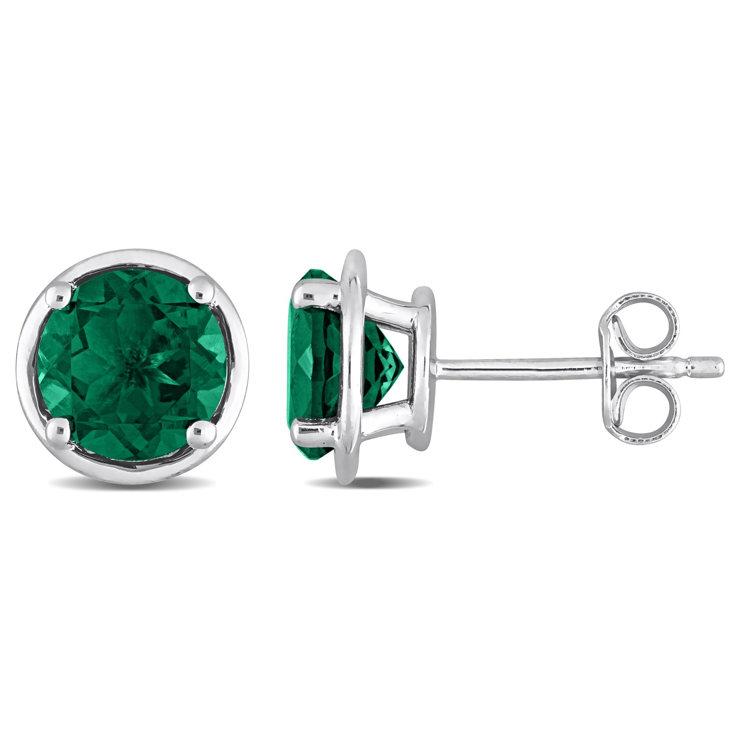 Sterling silver, created emerald gemstones, bezel setting, butterfly closure.