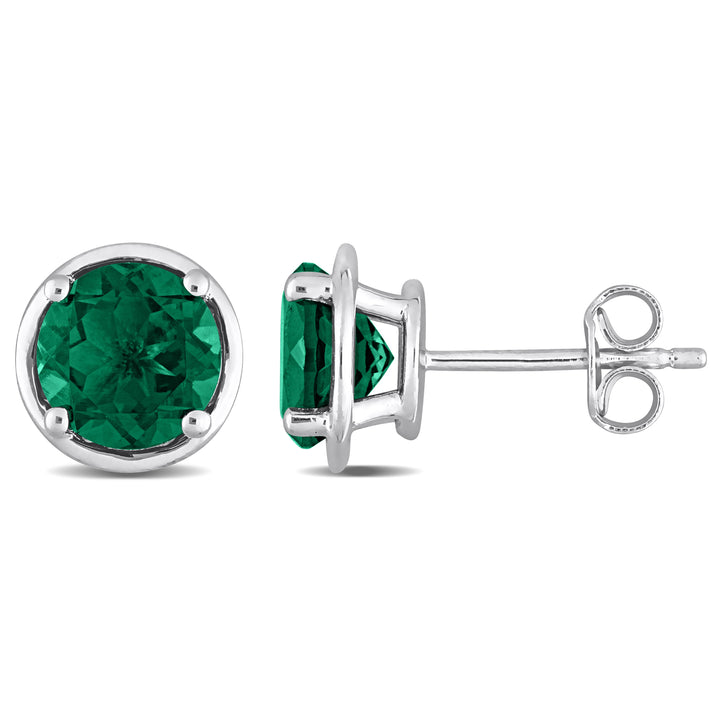 Mimi & Max Women's 2 1/3ct TGW Created Emerald Bezel Style Stud Earrings in Sterling Silver
