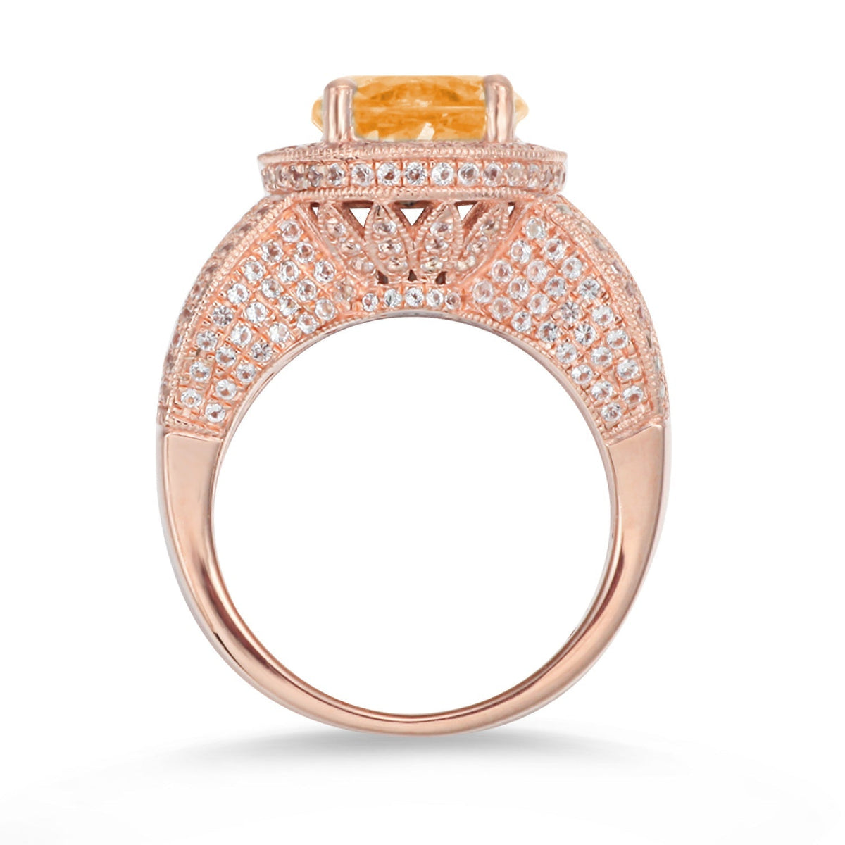 2.66 ct. round-cut citrine (1 stone). 4.53 ct. total gemstone weight. 242 round-cut white topaz. Sterling silver with two-tone plating. Ring setting dimensions: 23mm wide x 13mm long x 11mm high. Band dimensions: 3mm wide.