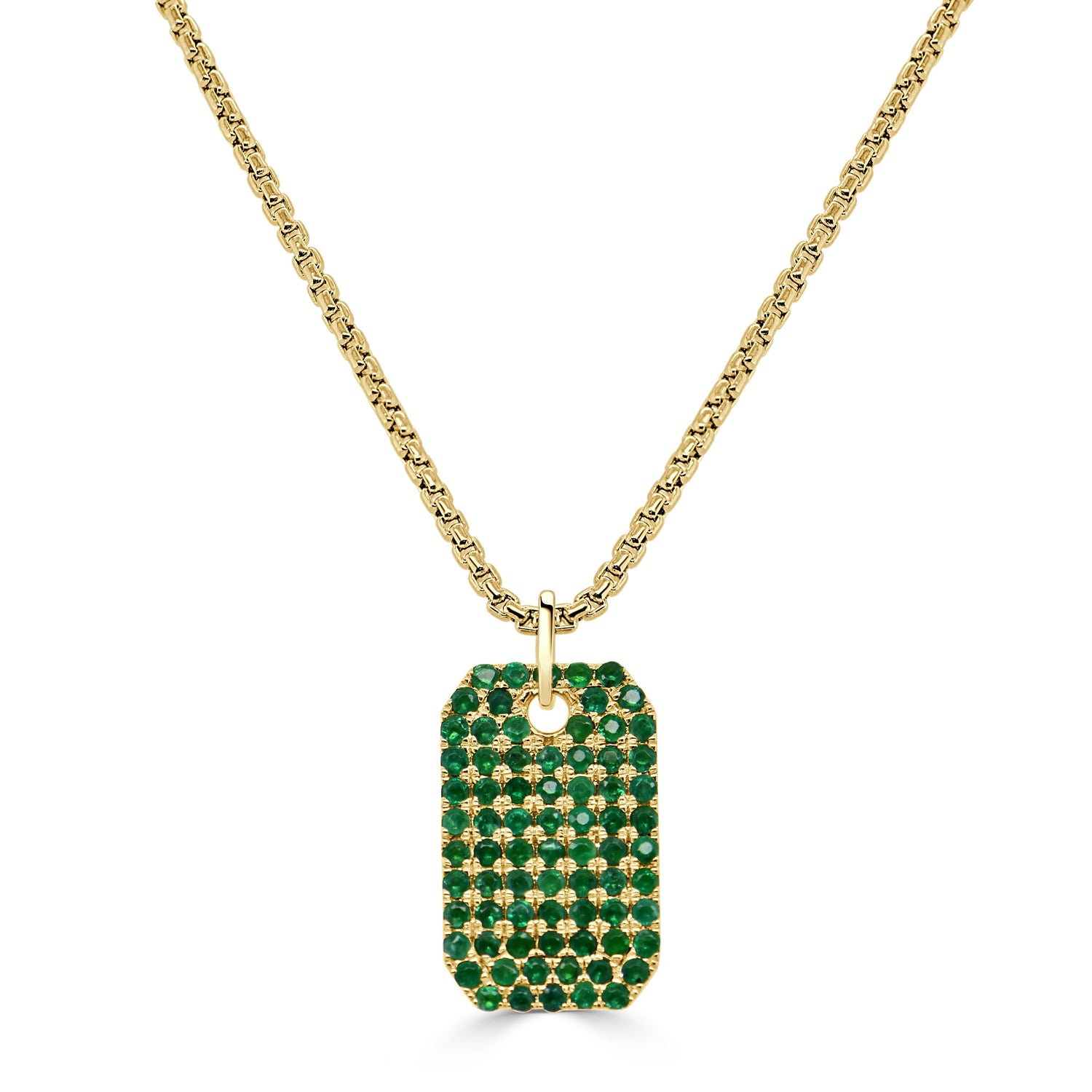 14K Gold & Emerald Dog Tag Necklace
