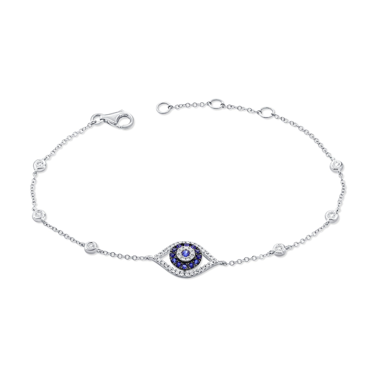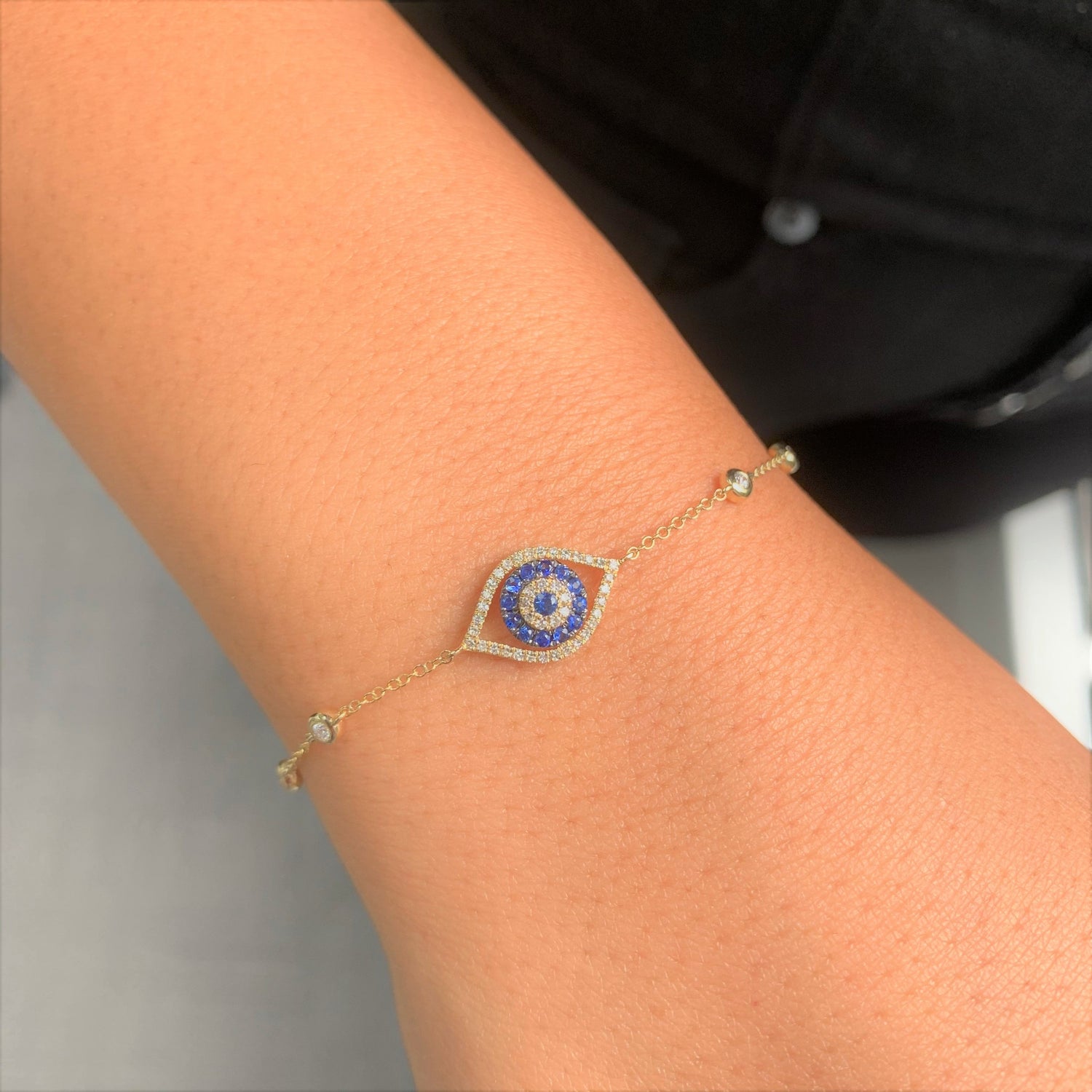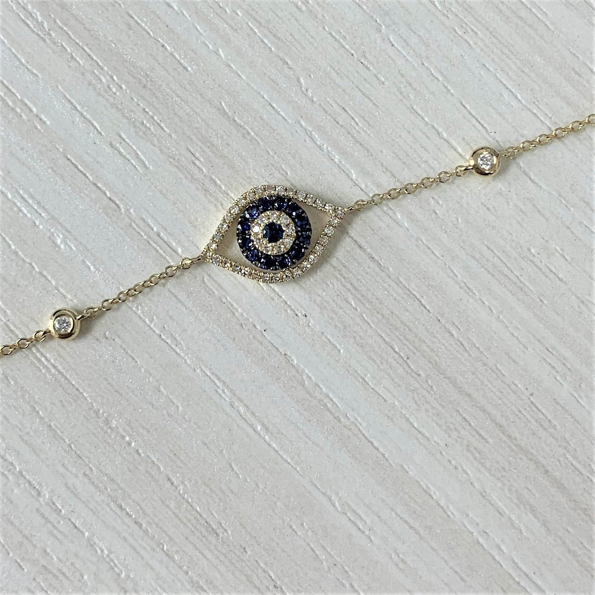 14k Gold Sapphire & Diamond Evil Eye Bracelet