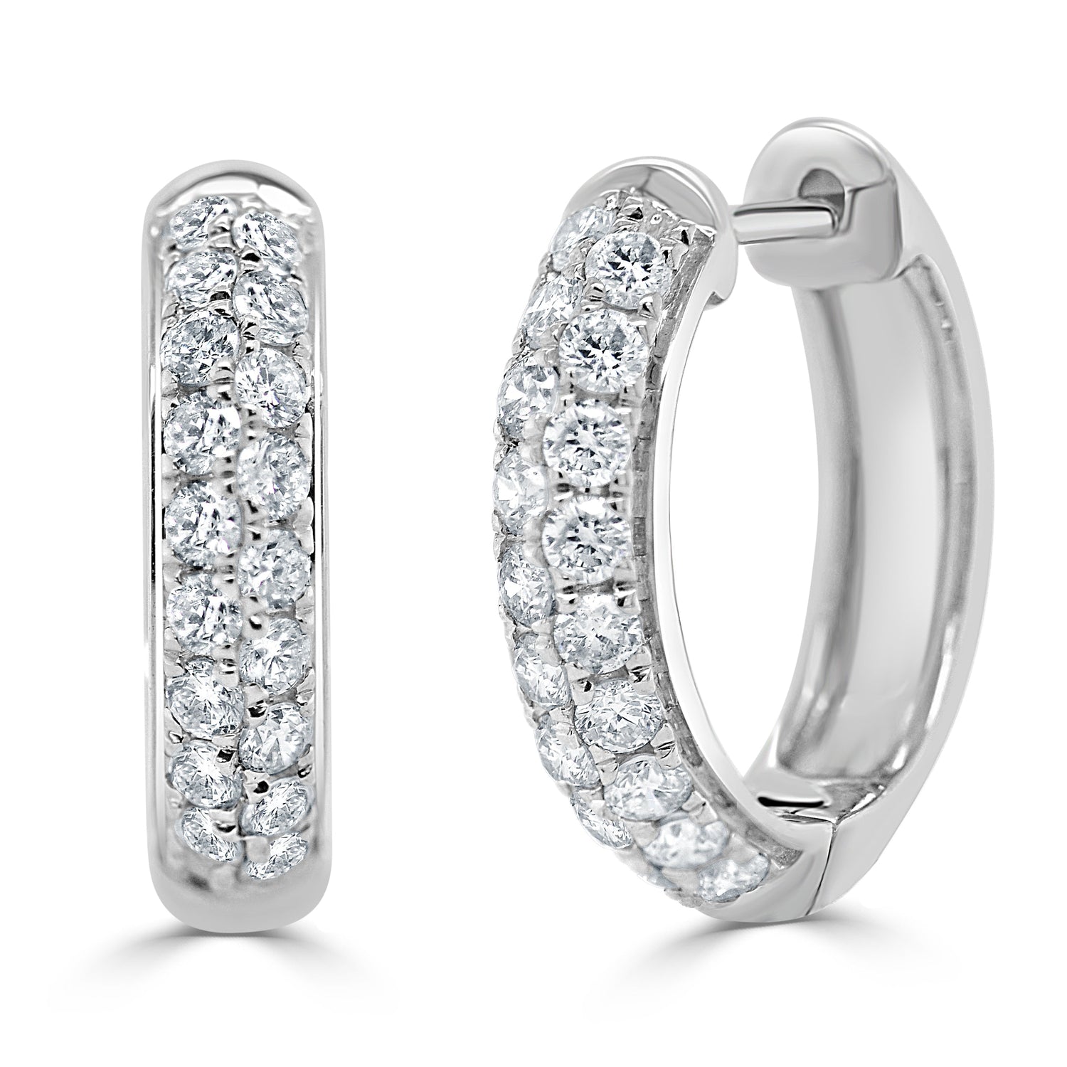14k Gold & Diamond Double Row Hoop Earrings