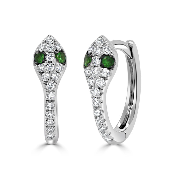 14K Gold Diamond & Tsavorite Snake Huggie Earrings