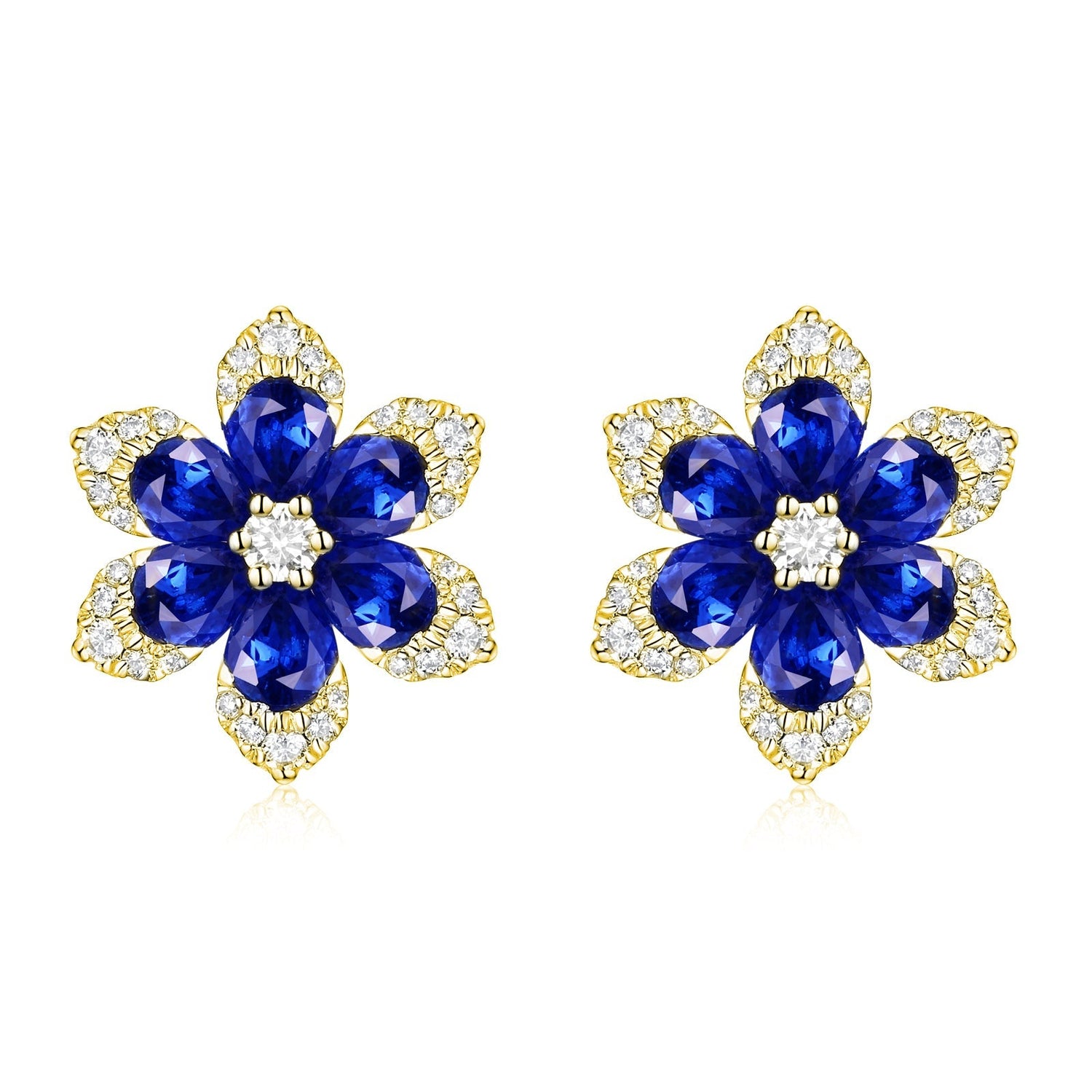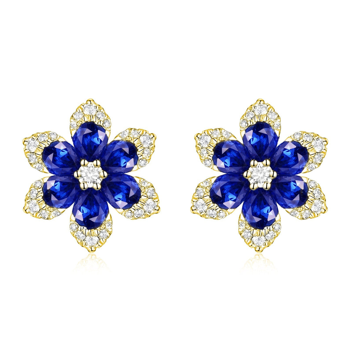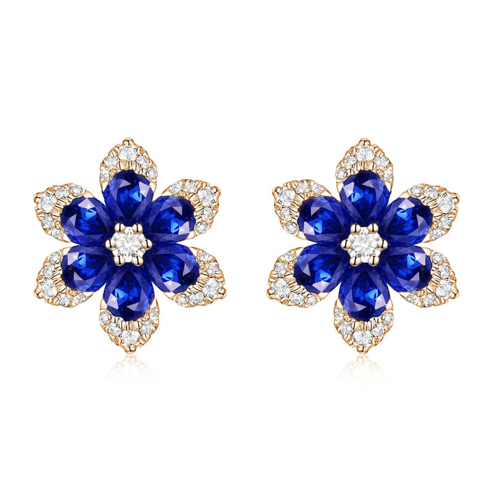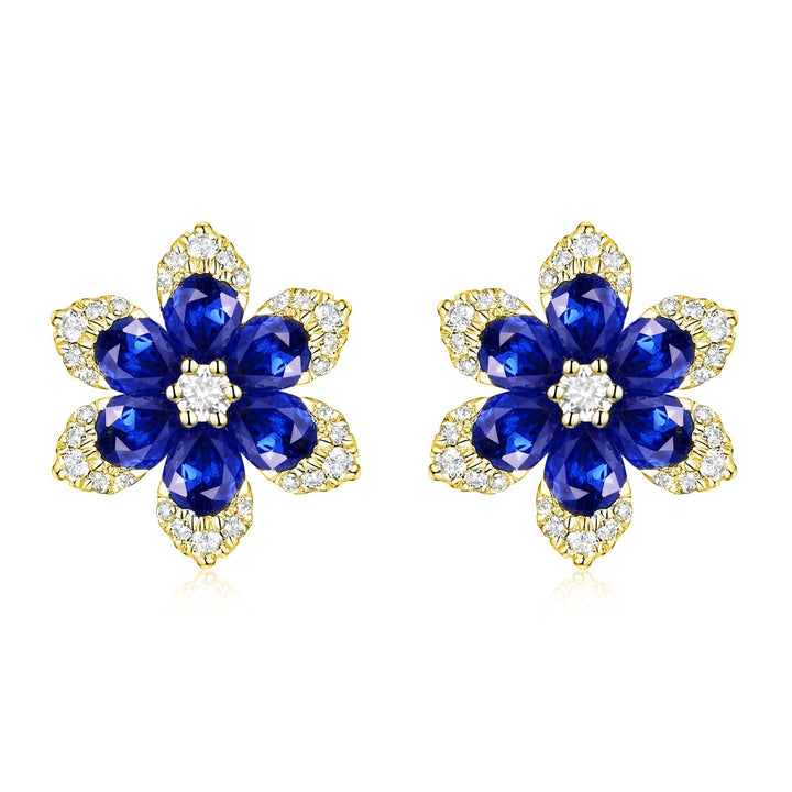 14k Gold Diamond & Sapphire Flower Stud Earrings