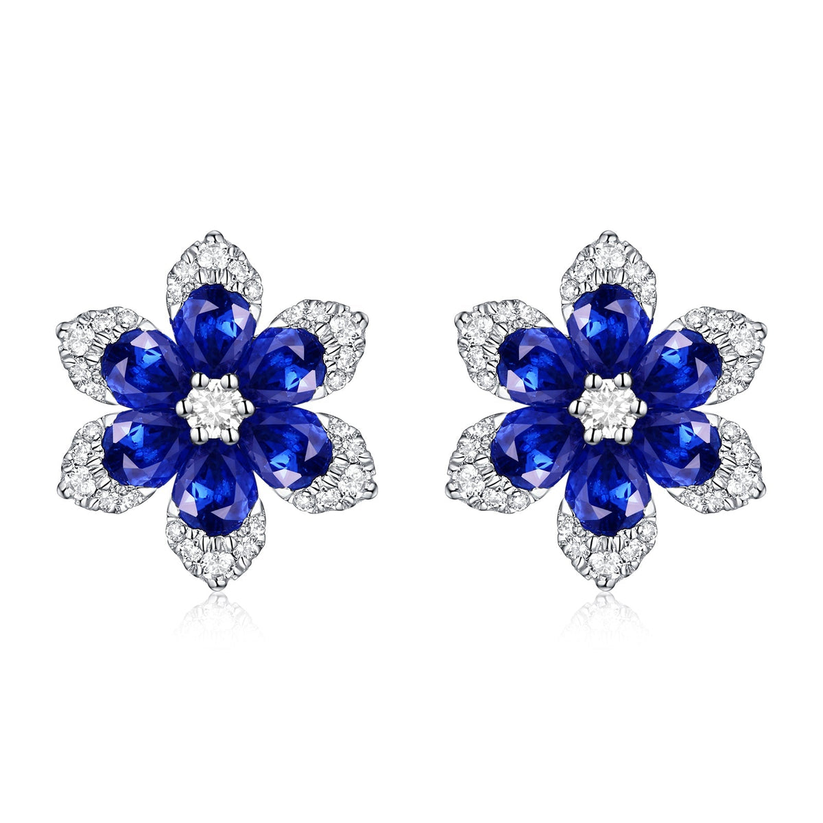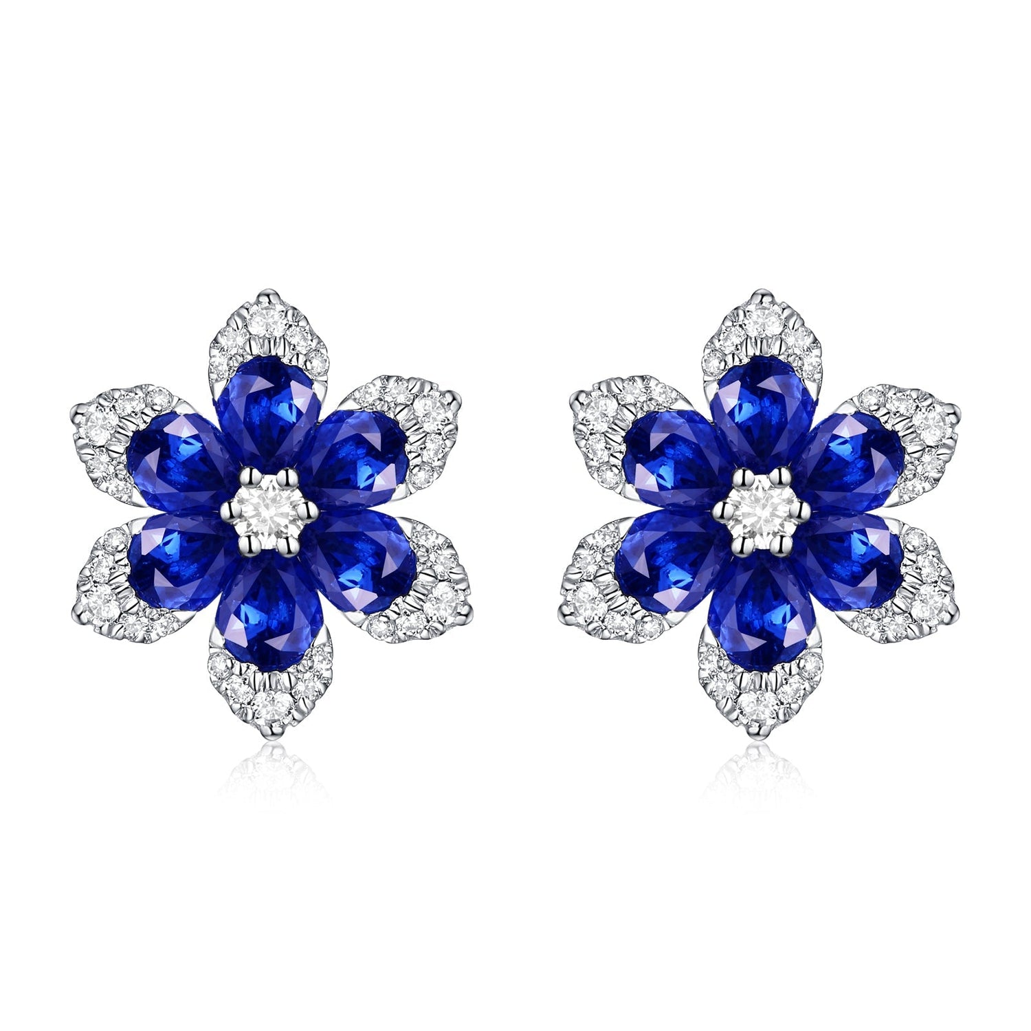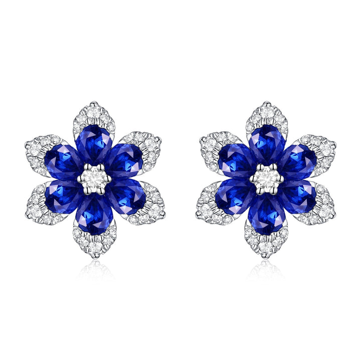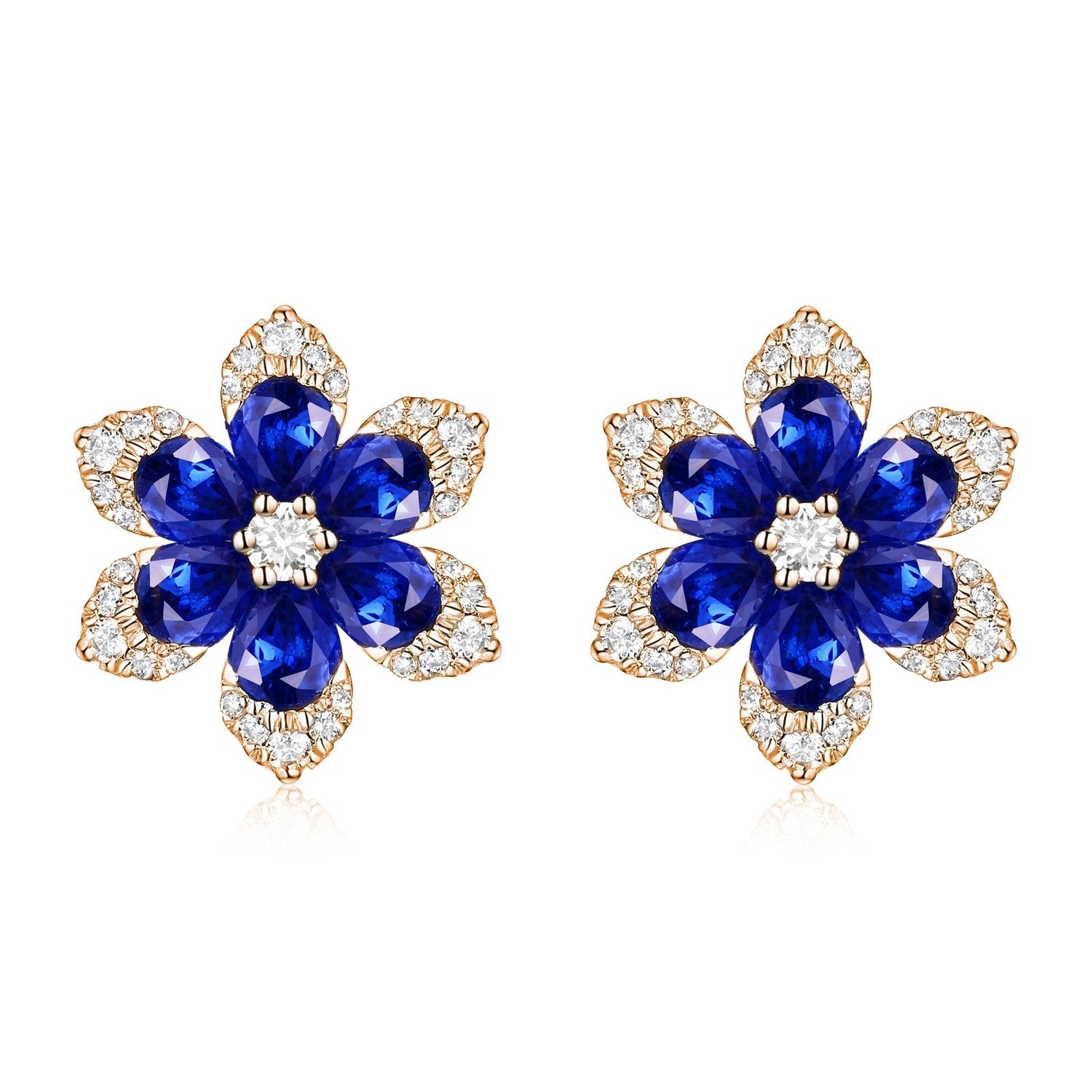 14k Gold Diamond & Sapphire Flower Stud Earrings