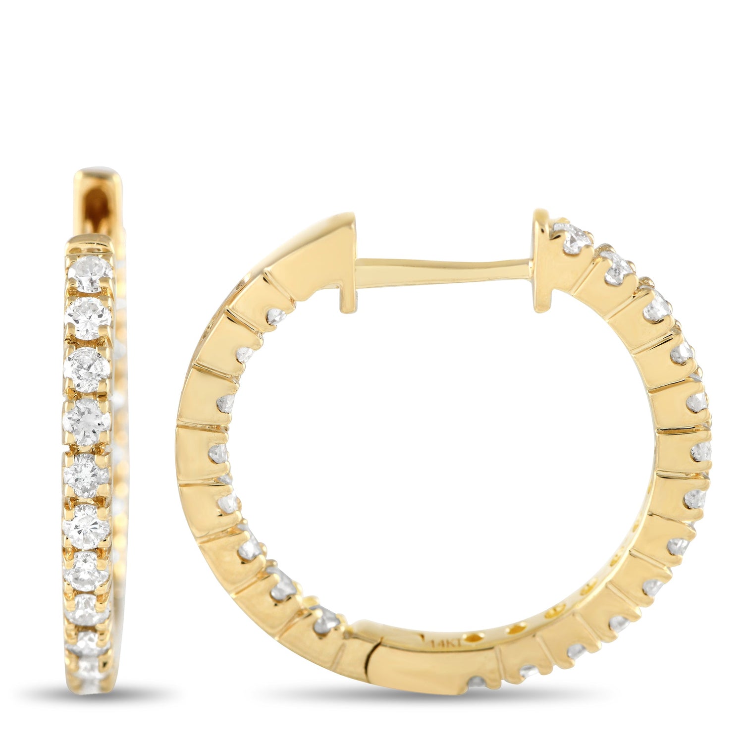 LB Exclusive 14K Yellow Gold 0.81ct Diamond Inside-Out Hoop Earrings