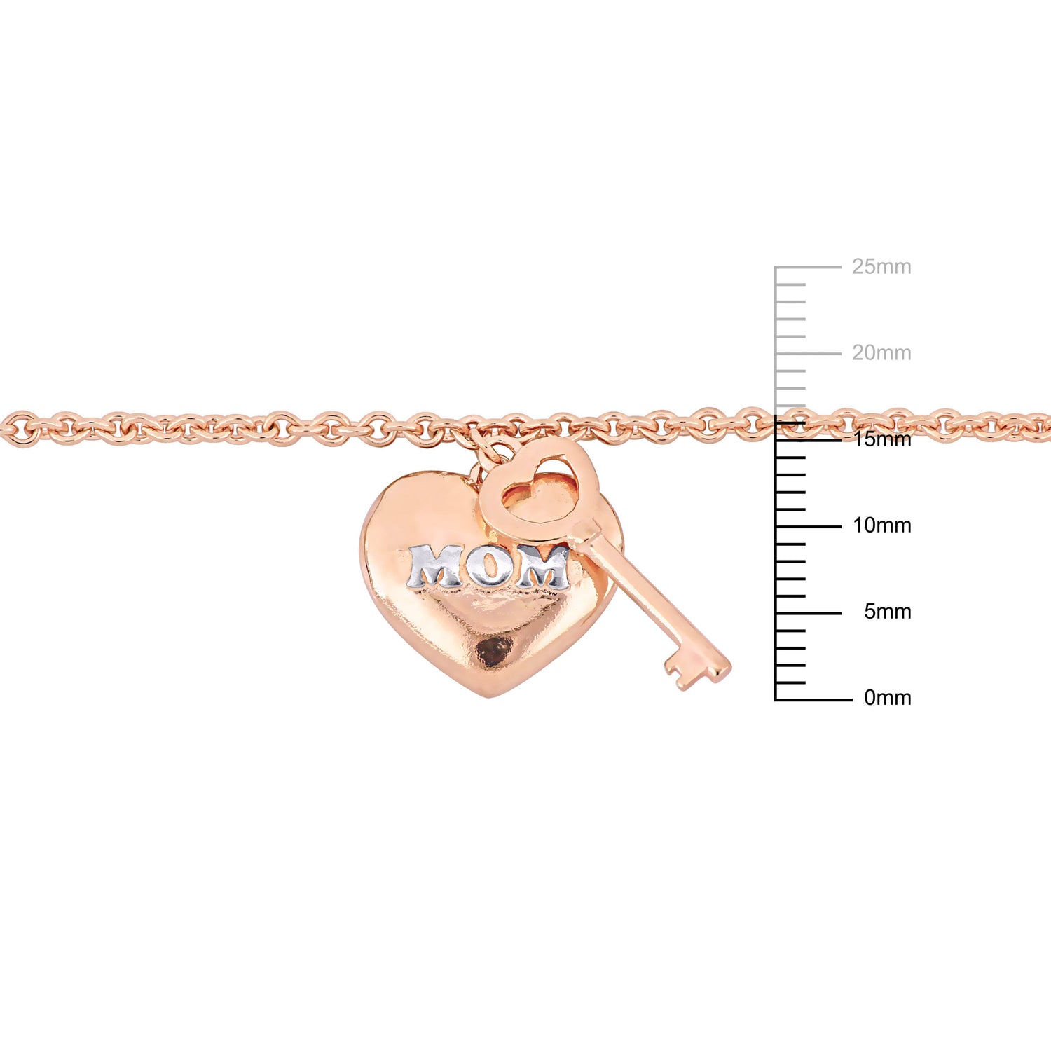 Mimi & Max Rose Silver Charm Bracelet w/18K Pink Gold Plated 'Mom' Heart & Key Charm