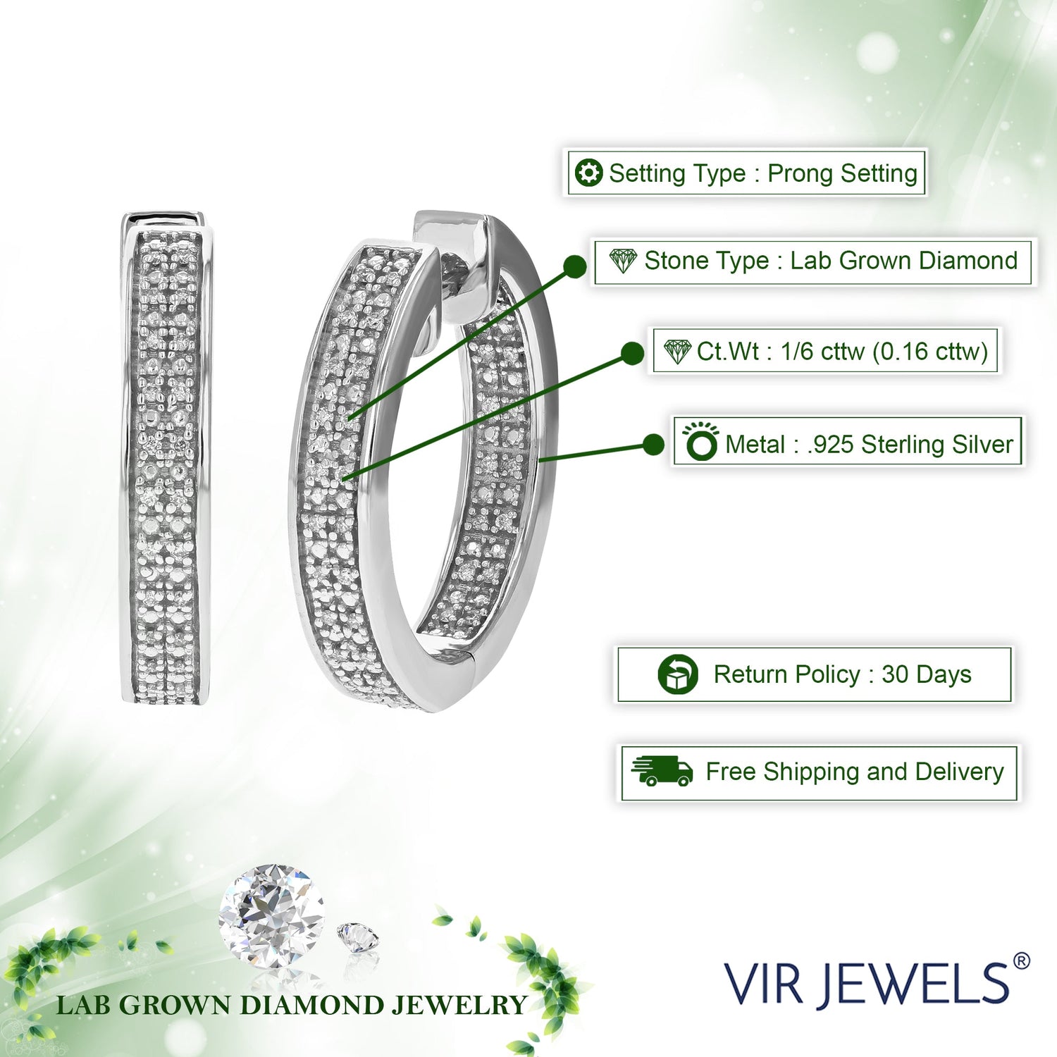 These 1/6 cttw Lab Grown Diamond Hoop Earrings by Vir Jewels offer sparkling elegance with 80 round lab-grown diamonds set in prong settings. Made from sterling silver, these hoops are a versatile choice for both casual and formal occasions, secured with a hidden snap post closure.