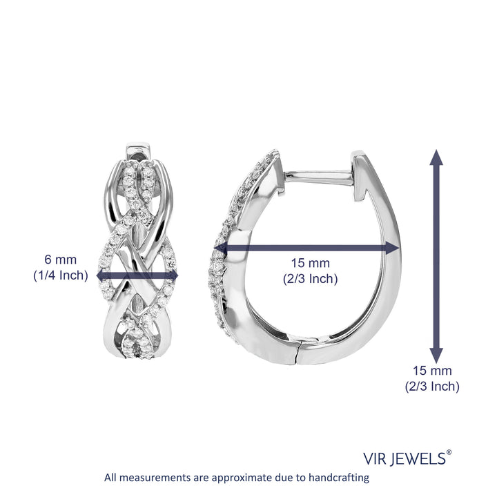 .925 sterling silver with 1/5 cttw of round lab-grown diamonds (64 stones). Hoop dimensions: 6 mm wide x 15 mm high.