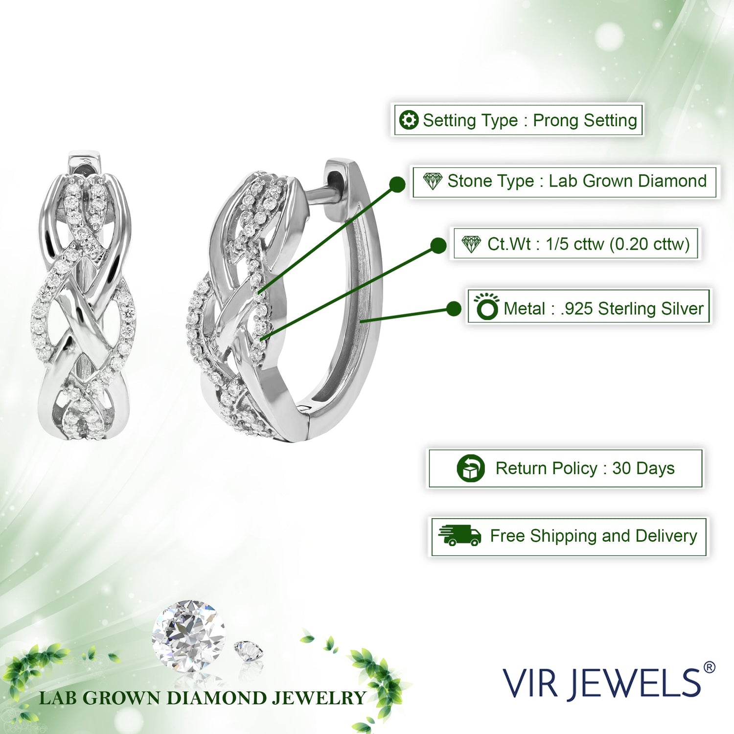 1/5 cttw 64 Stones Round Lab Grown Diamond Hoop Earrings .925 Sterling Silver Prong Set 2/3 Inch