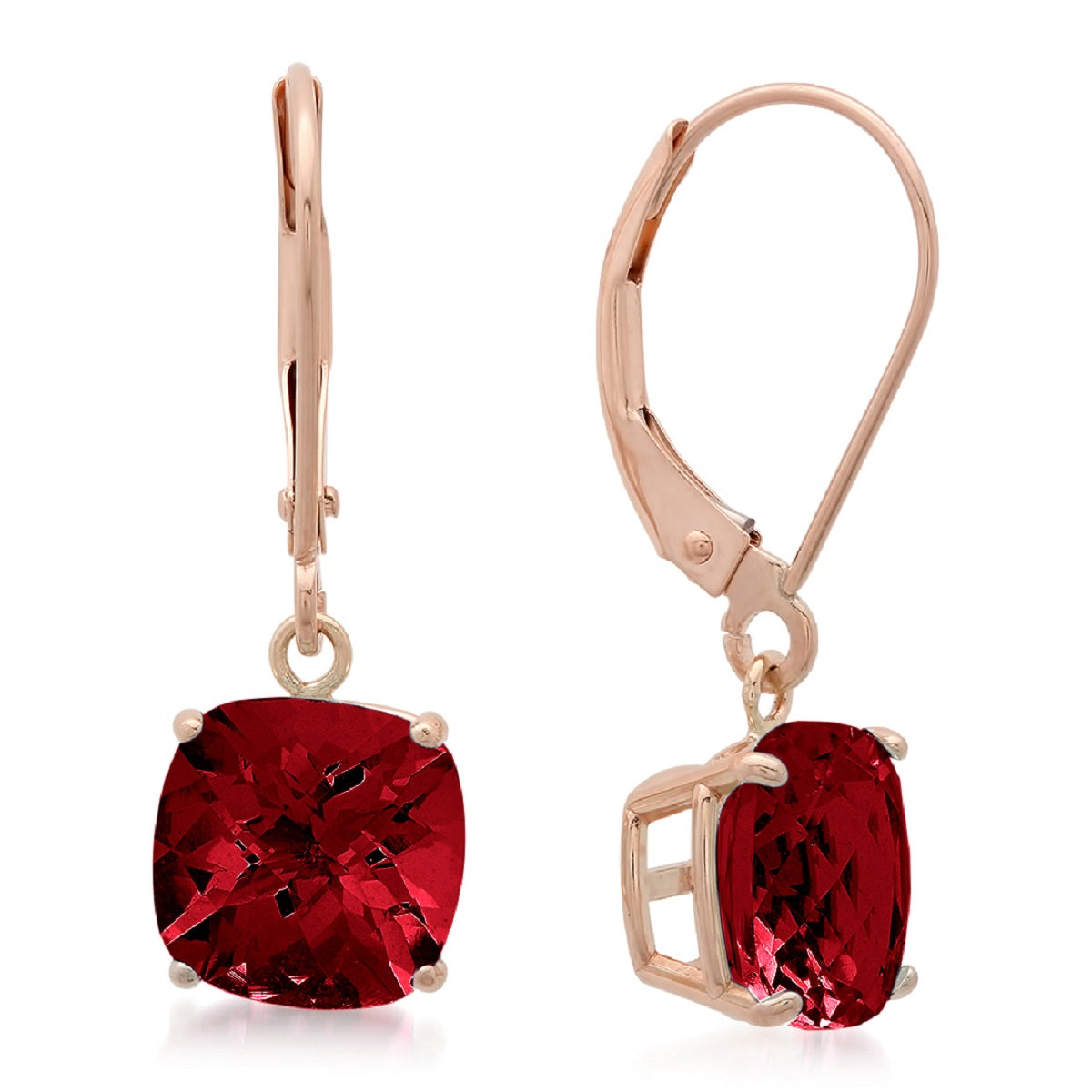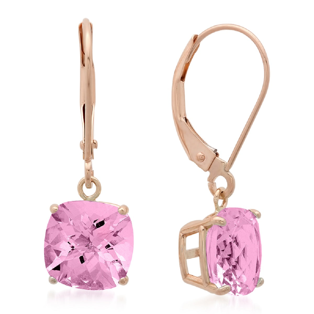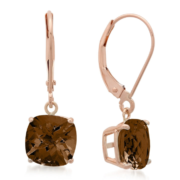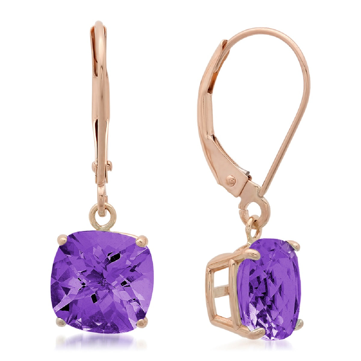 10K Rose Gold 8MM Cushon Checkerboard Cut Amethyst Dangle Leverback Earrings