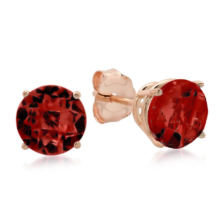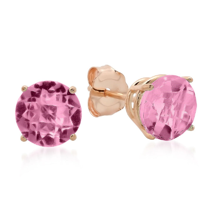 10K Rose Gold 6MM Round Checkerboard Cut Pink Amethyst Stud Earrings