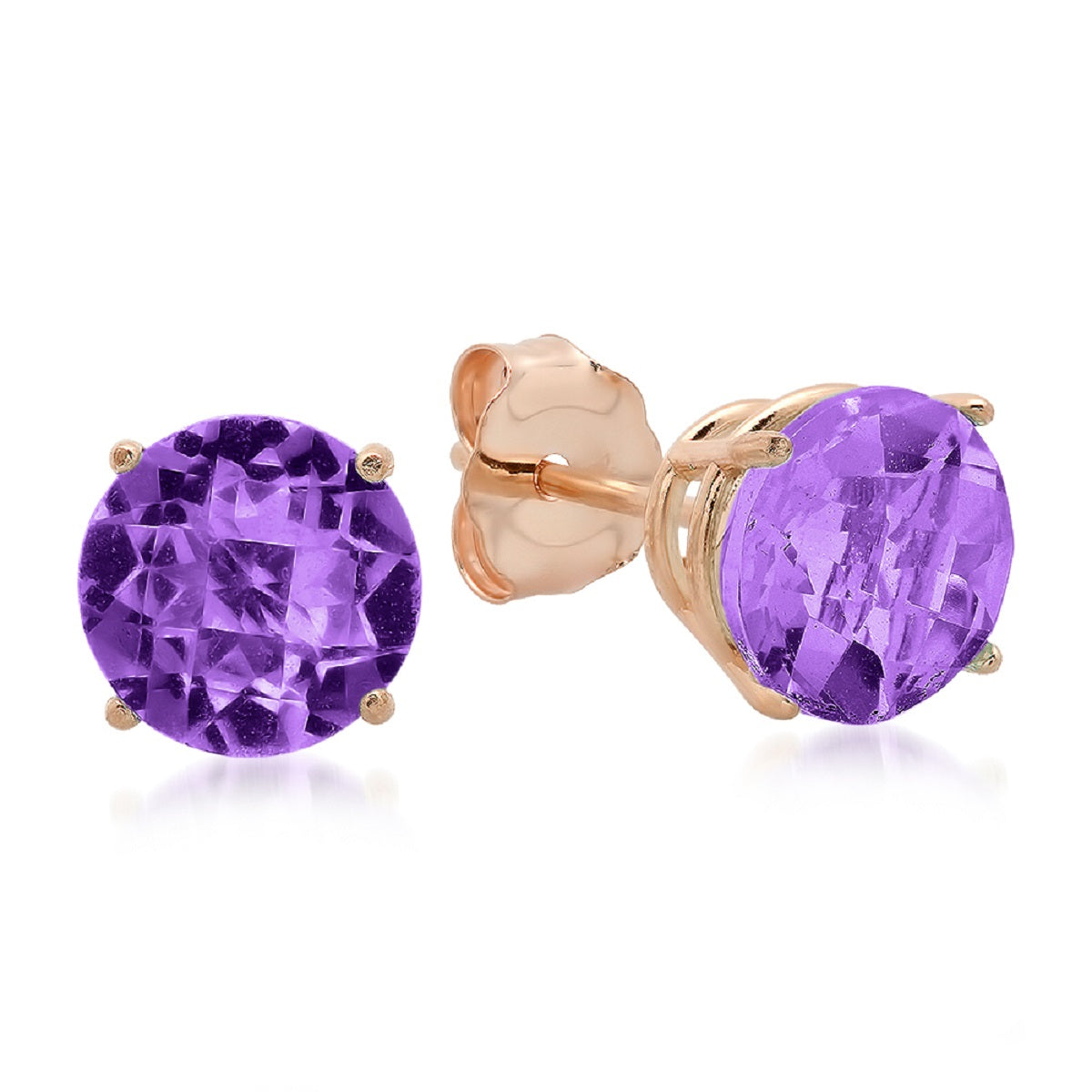 These 10K Rose Gold 6MM Round Checkerboard Cut Pink Amethyst Stud Earrings by MaxColor showcase the beautiful hues of pink amethyst in a checkerboard cut. Set in 10K rose gold, these stud earrings are an elegant addition to any collection. The amethyst stones (6mm) catch the light with every turn, making them perfect for both casual and formal occasions.