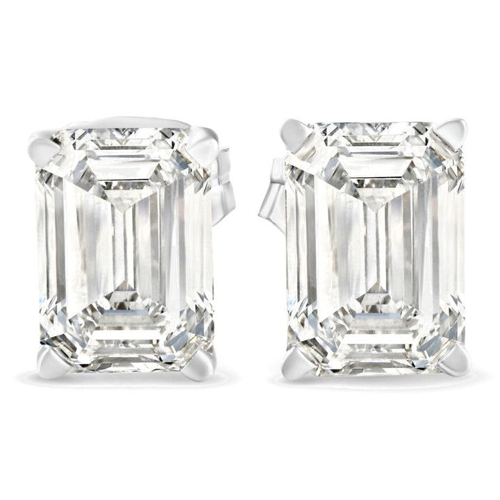 2 1/4 Ct Lab Grown Emerald Cut Diamond Studs 14k White Gold Earrings