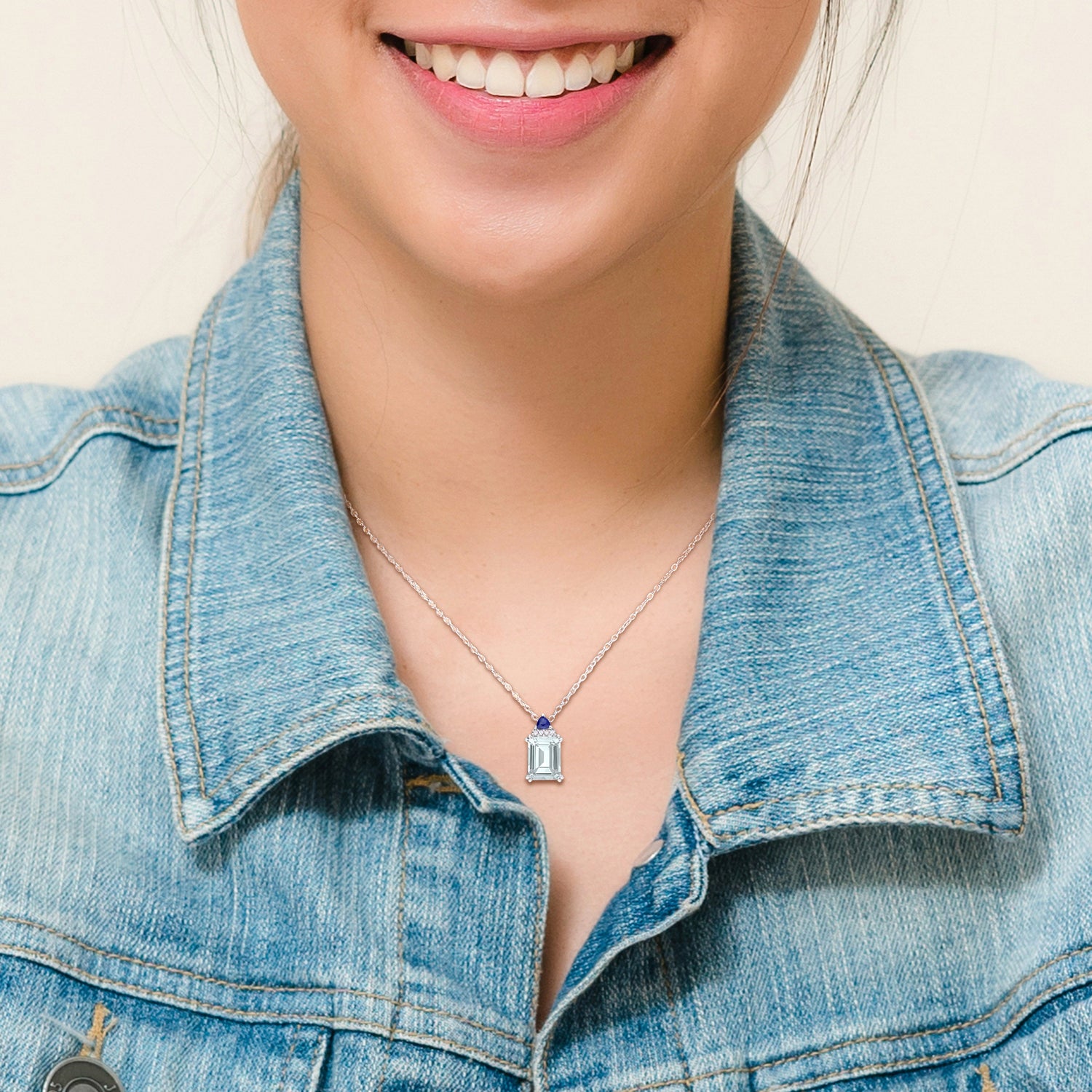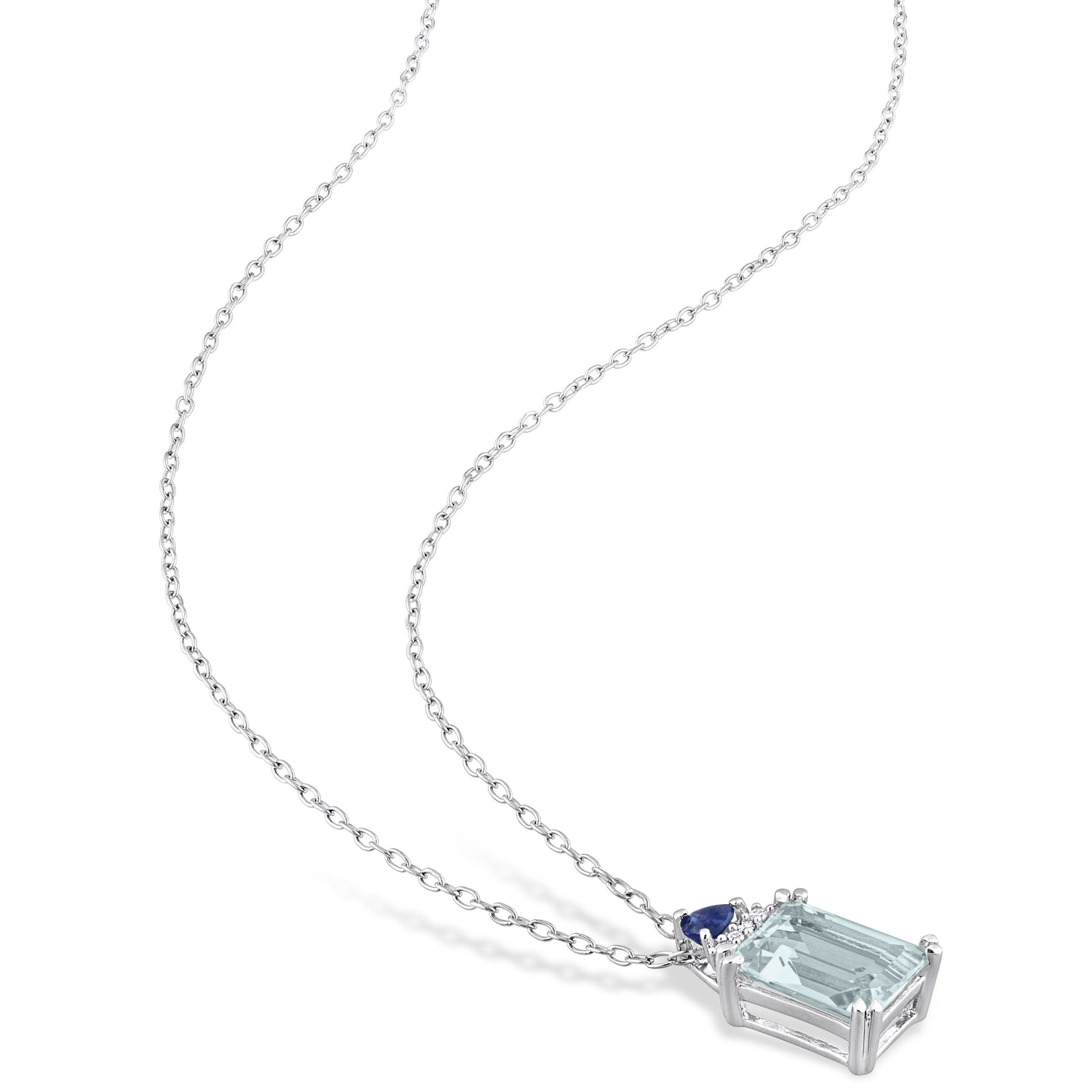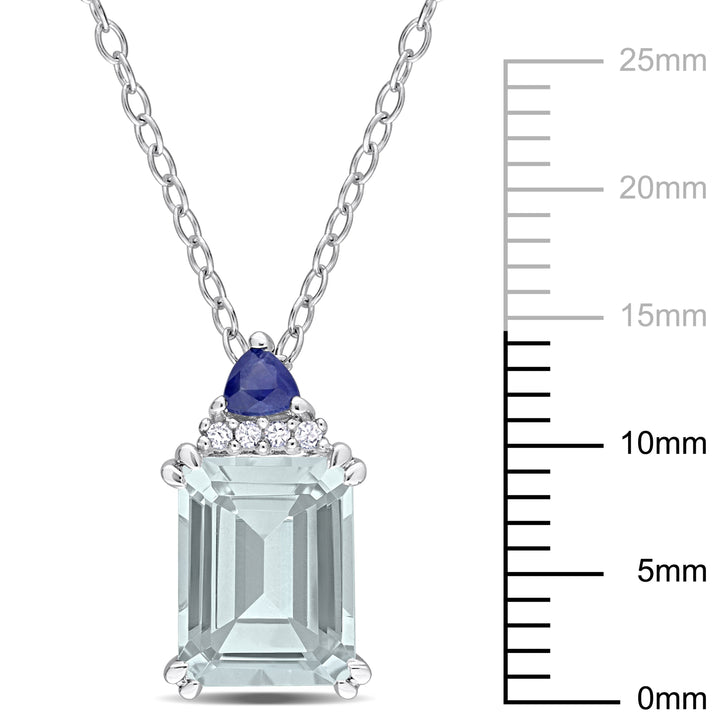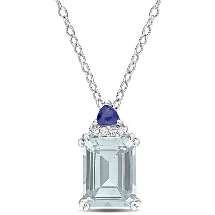 Mimi & Max Womens 2ct TGW Octagon Aquamarine Trilliant Blue Sapphire and Diamond Accent Necklace in Sterling Silver