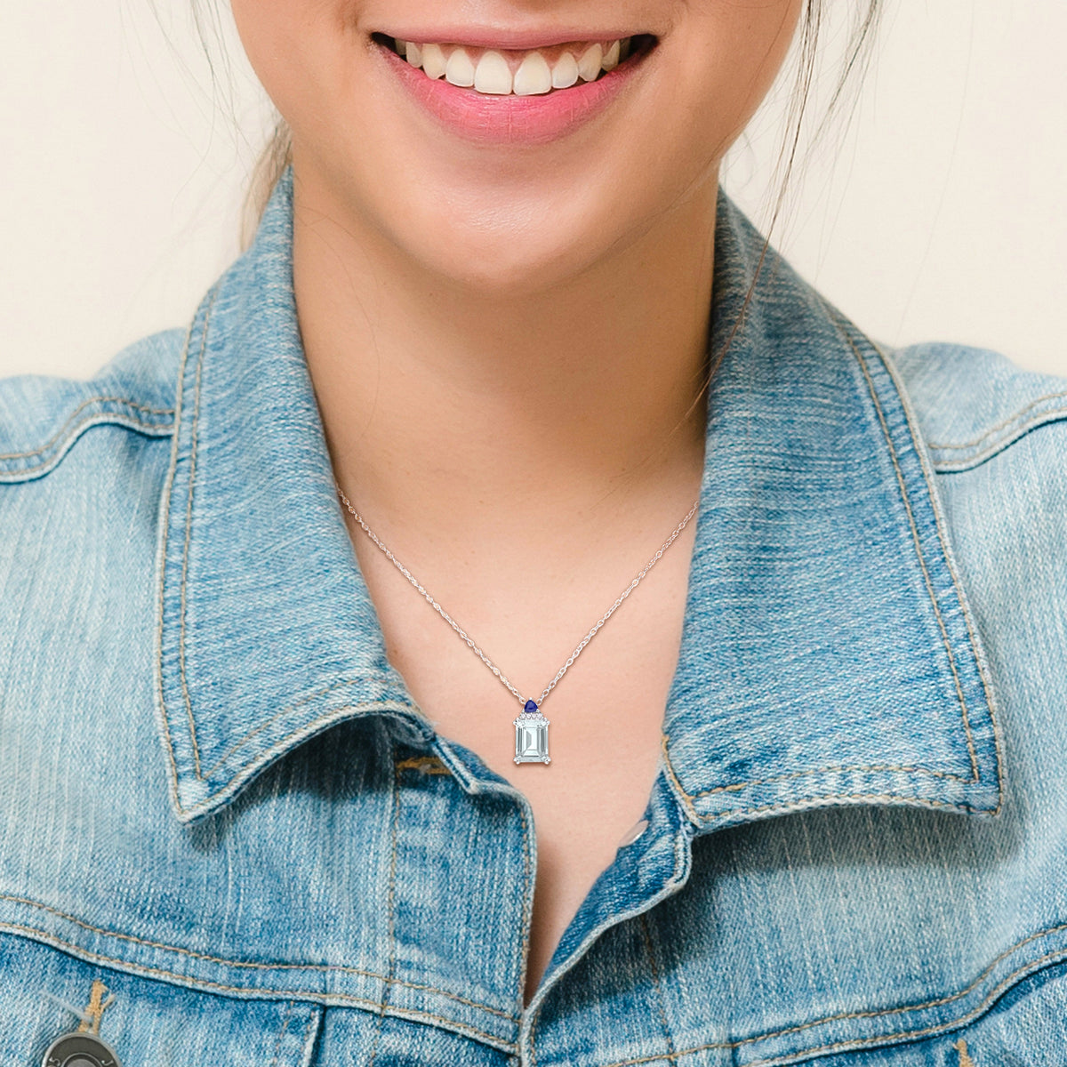 This Aquamarine, Blue Sapphire, and Diamond Accent Necklace by Mimi & Max is a captivating fusion of cool tones and timeless elegance. Featuring an octagon-cut aquamarine, a trilliant-cut blue sapphire, and delicate diamond accents, this pendant is the perfect expression of refined beauty, making it an ideal gift for any special occasion.